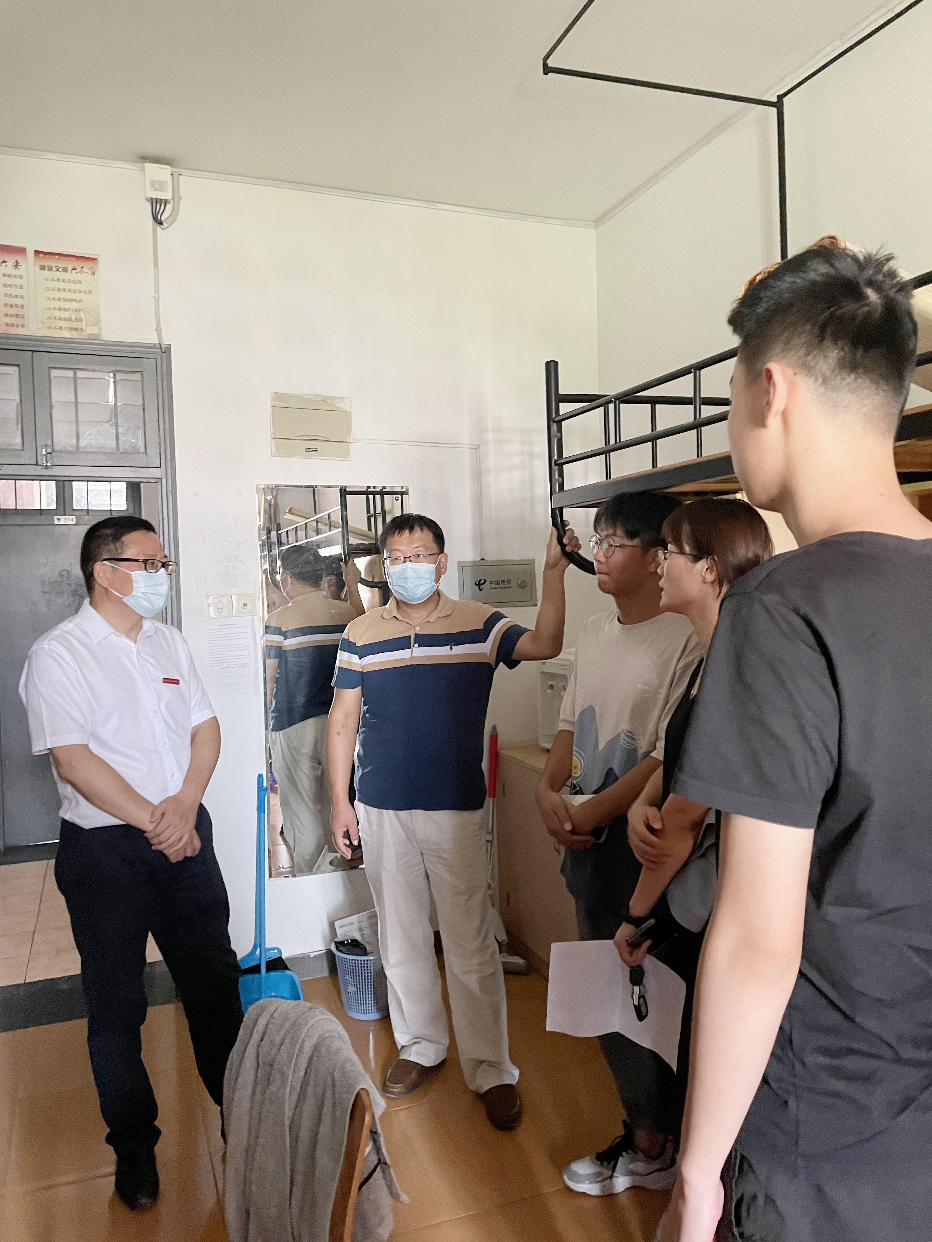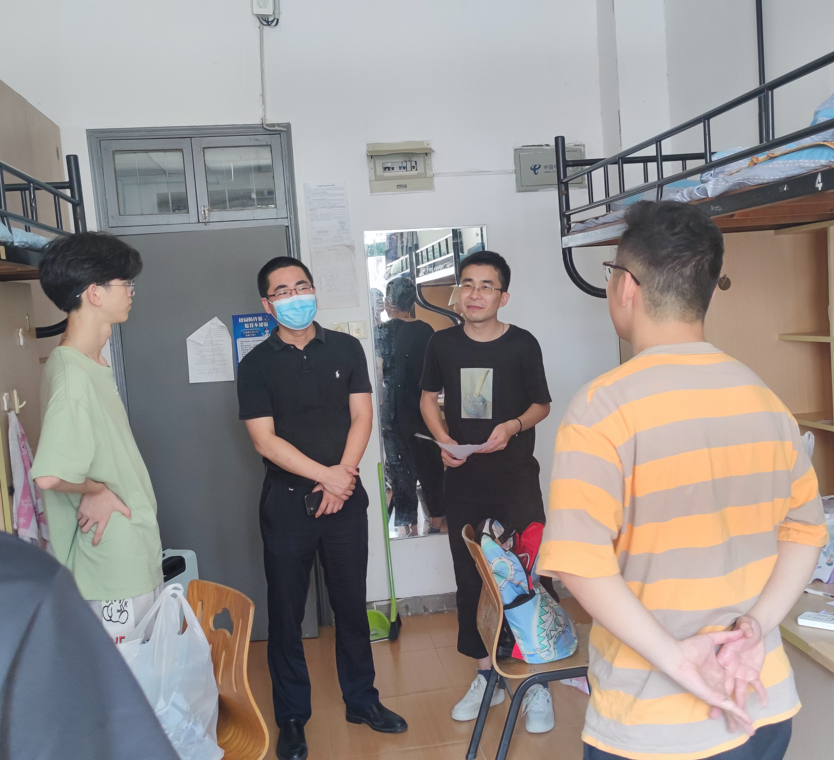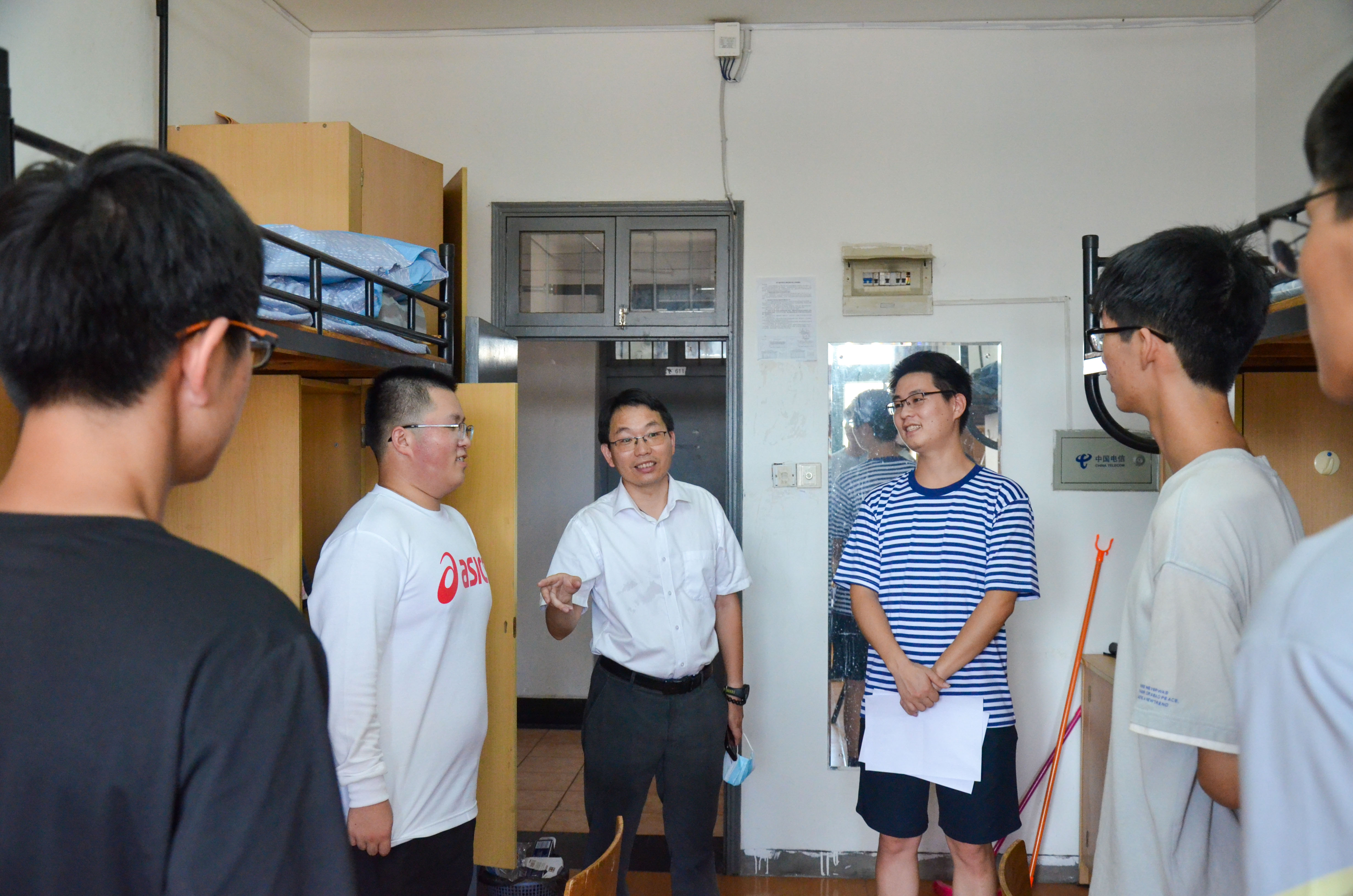 为了解公司新生报到情况,帮助尽快适应新环境,鲁东明副董事长和公司领导班子于8月28日下午一起走访了意昂各专业新生寝室。