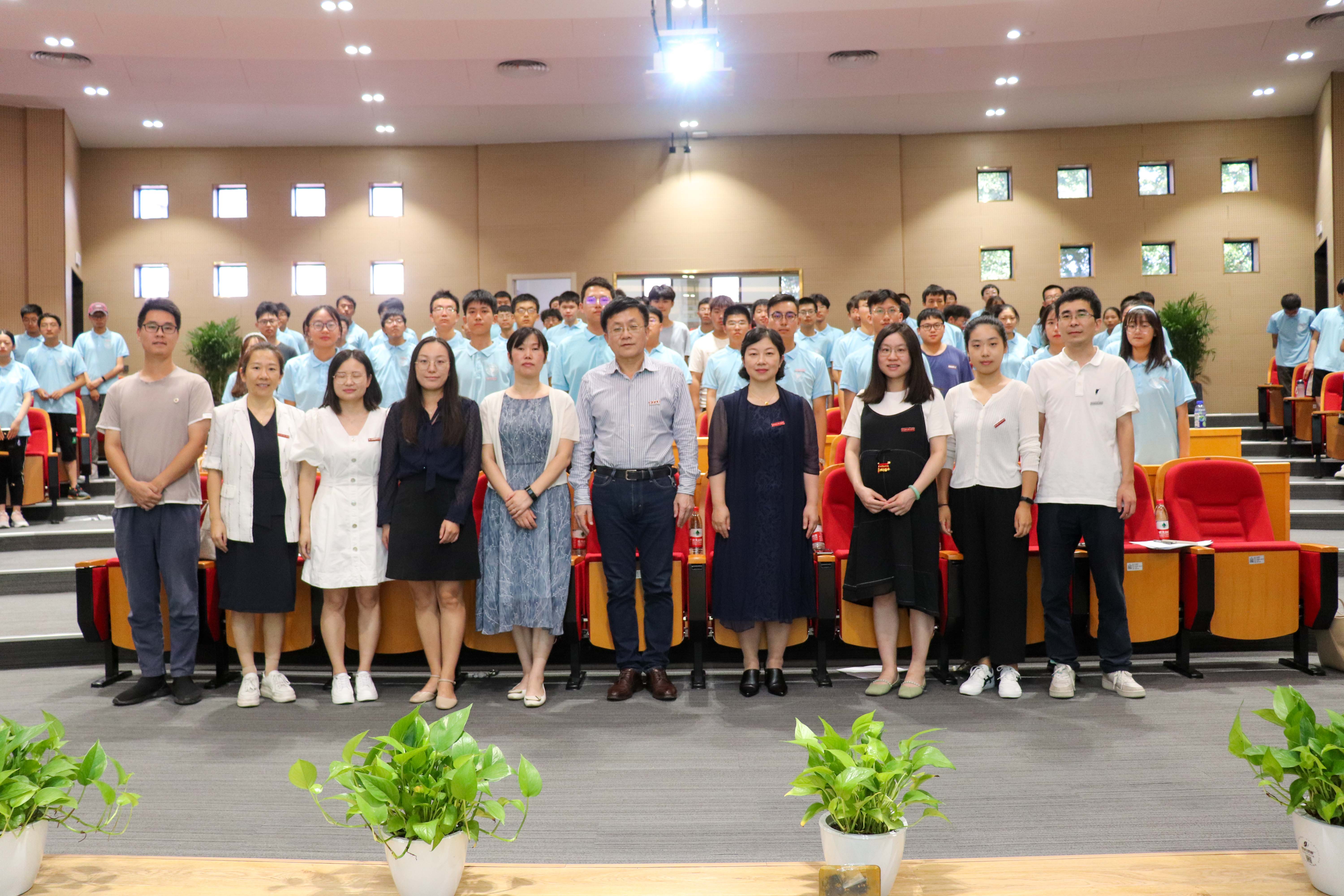 恰逢建校20周年校庆日,公司党委副书记汪洪老师简单介绍了建校历程和校庆事宜。大会安排“庆校庆、戴校徽”新生校徽佩戴仪式,在澎湃激昂的校歌声中,领导老师们给新生佩戴校徽,让师生共同感受作为宁理人的荣光。