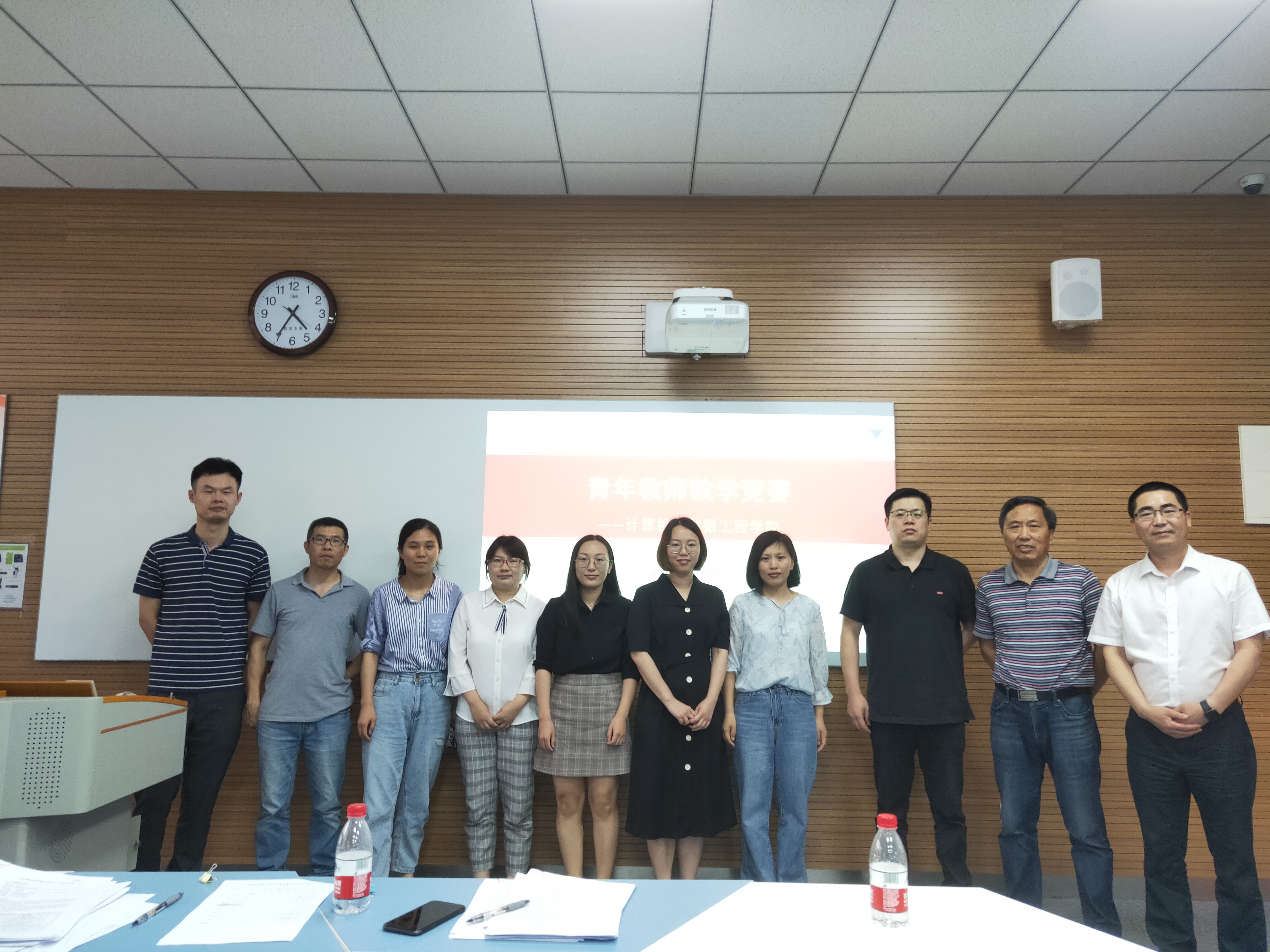 经公司积极动员,公司共有8位青年教师参加了比赛。比赛评委由公司领导、教学督导、公司资深教师组成。比赛分为教学设计、课堂教学、教学反思三个环节。课堂教学环节中,教师们精心准备,精神饱满地完成了20分钟的讲课。比赛过程中,评委们还对各位教师的教学设计、课堂教学环节等方面提出了针对性的建议。经过专家评审,最终,徐小伟、沈洁琼老师获得一等奖;刘璇、宋海燕老师获得二等奖;王法有、黄景芳、杨勇、王钢老师获得三等奖,参赛老师和评委们合影留念。