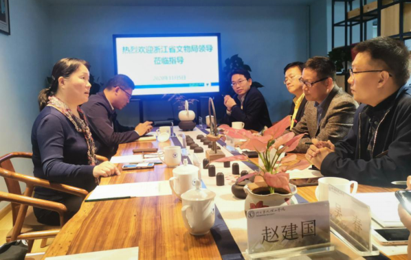 2020年11月5日下午,浙江省文物局副局长曹鸿、博物馆与社会文物处处长杨文庆莅临浙意昂体育调研指导工作。公司副董事长鲁东明,意昂、设计公司、传媒公司相关党政领导陪同调研。