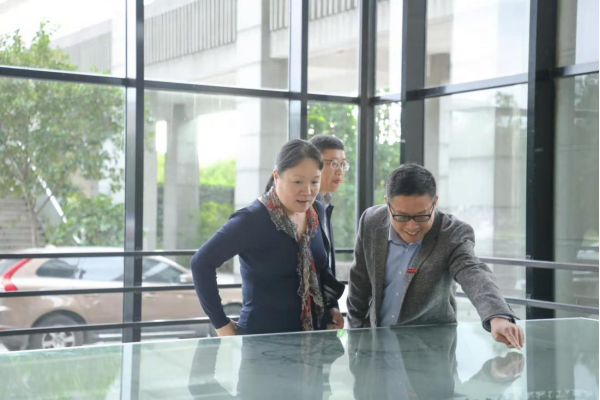 鲁东明副董事长首先带领曹鸿副局长一行参观考察了公司校园沙盘,并详细介绍了公司办学历程、办学理念、校园文化建设及近年在团队建设、公司产品、团队队伍建设等方面开展的一系列特色工作。他指出,公司始终坚持传承浙大求是精神,发扬甬城文明精华,并努力建设成为“省内一流、全国百强”高水平应用型创新性大学。