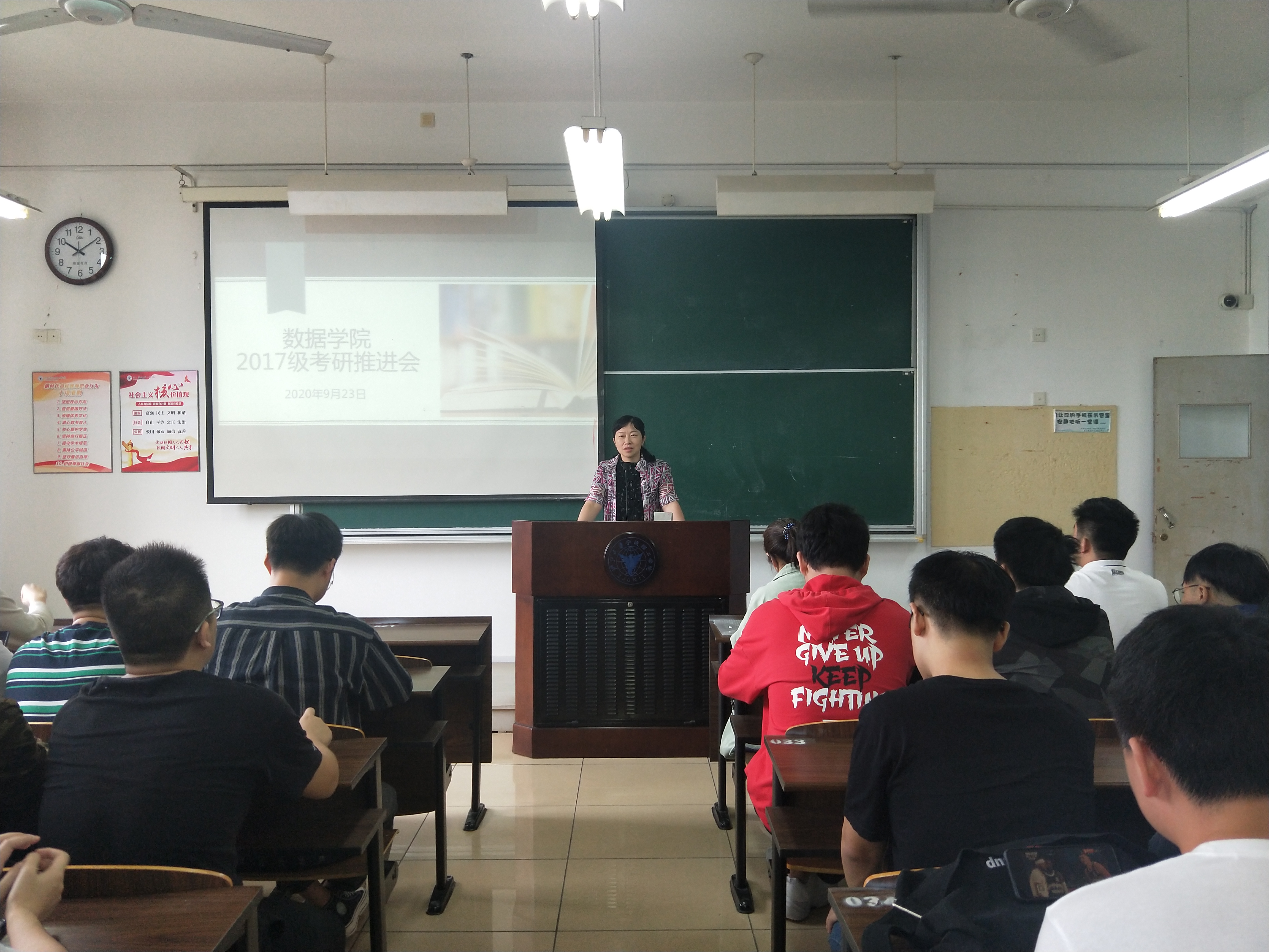 奚捷捷老师介绍考研教室管理相关规定,考研辅导机构孙老师讲解考研形式和辅导课程相关知识。