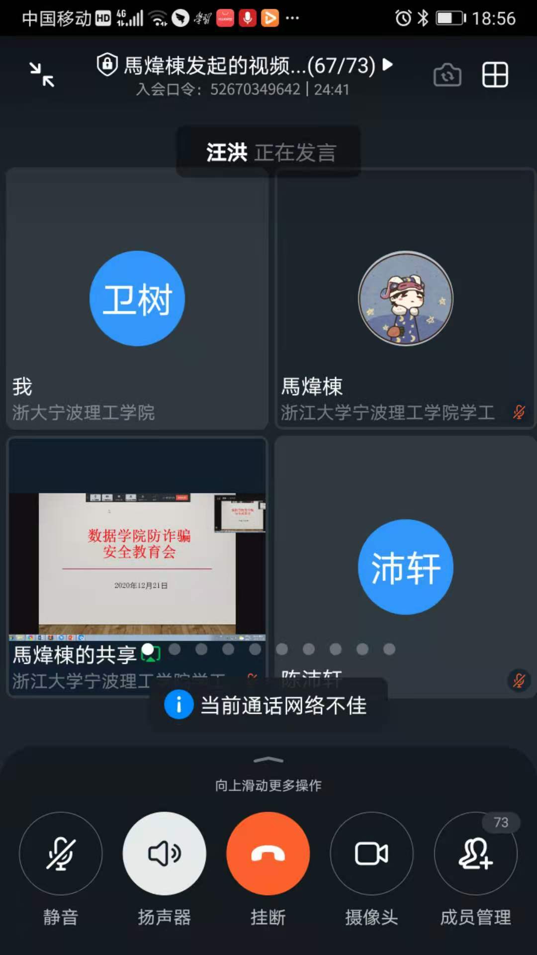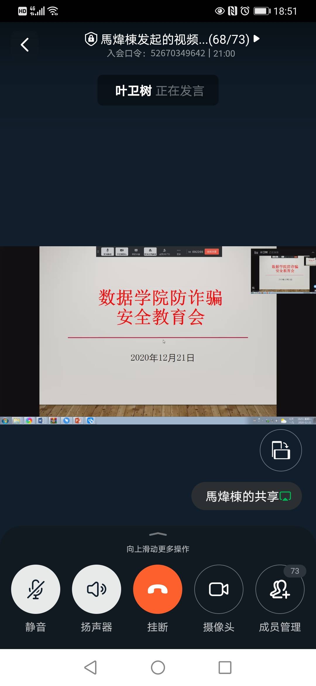 为增强员工安全防范意识,进一步提升员工防诈骗能力,意昂于2020年12月21日晚举办线上反诈骗安全宣讲会。公司保卫处副处长叶卫树老师、公司党委副书记汪洪老师出席,学工办老师和公司班长、生活委员参加。