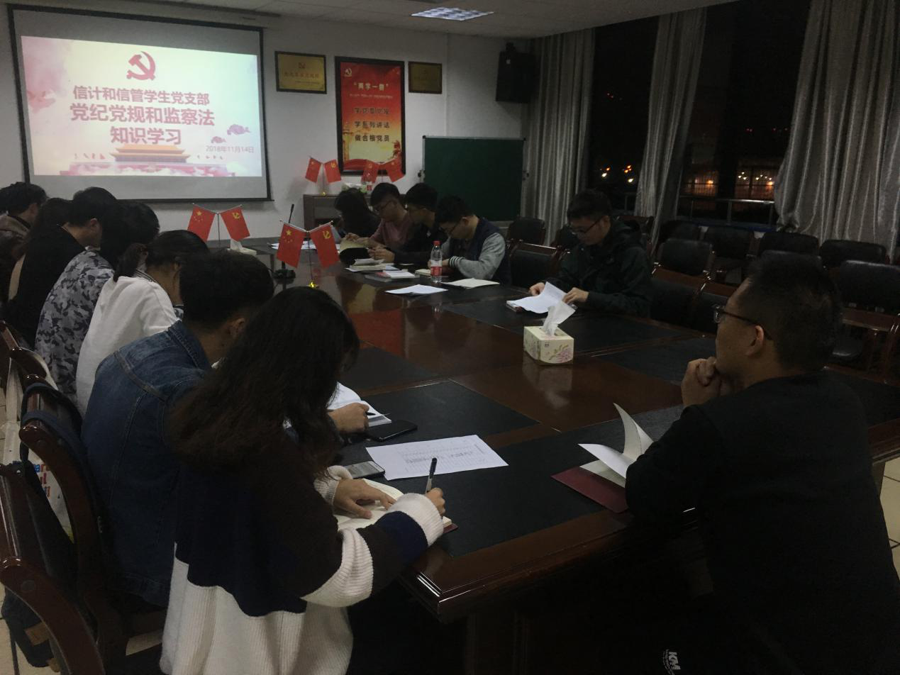 为强化党员干部的纪律法律意识,根据宁波市纪委《关于开展2018年当归当即和监察法知识学习考试的通知(甬纪发[2018]7号)》要求,结合学习第七届“廉洁文化节”活动安排,意昂信计和信管员工党支部于2018年11月14日星期三晚6点30在石麟602会议室组织党员同志对党规党纪和监察法学习,陈辉老师主持并进行讲解。