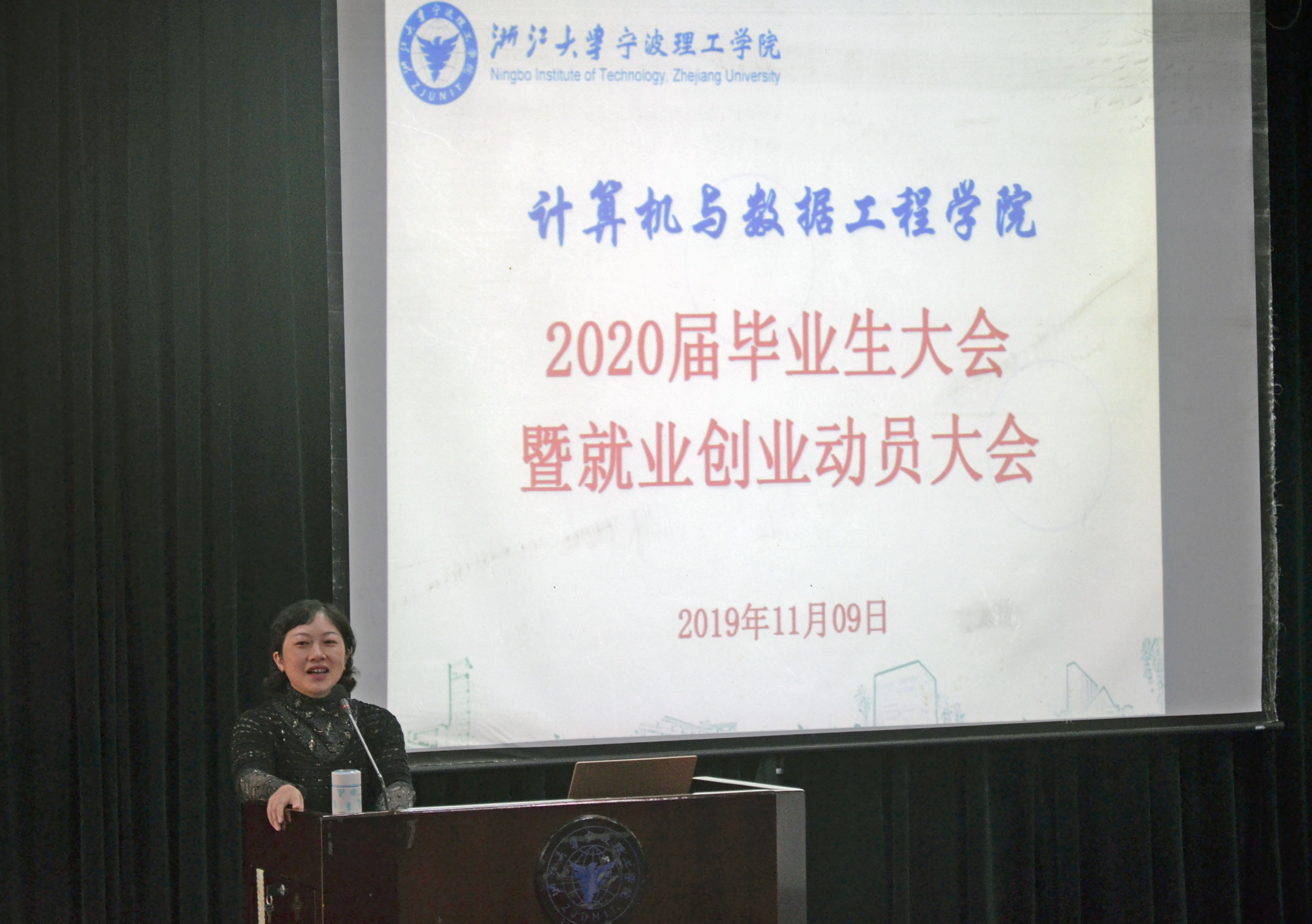 汪洪老师进行动员讲话,她分析了当前就业形势,指出就业市场的严峻性和挑战性,并鼓励毕业生自主择业、积极就业,同时她提醒毕业生外出就业要注意人身和财产安全。教务处郑洁老师向毕业生讲解了毕业设计要求以及相关注意事项,强调了毕业证学位证书的授予条件。高翔老师结合2019届毕业生就业情况,介绍了本年度就业相关工作,讲解了就业推荐表、就业协议书等各类表格的填写规范。