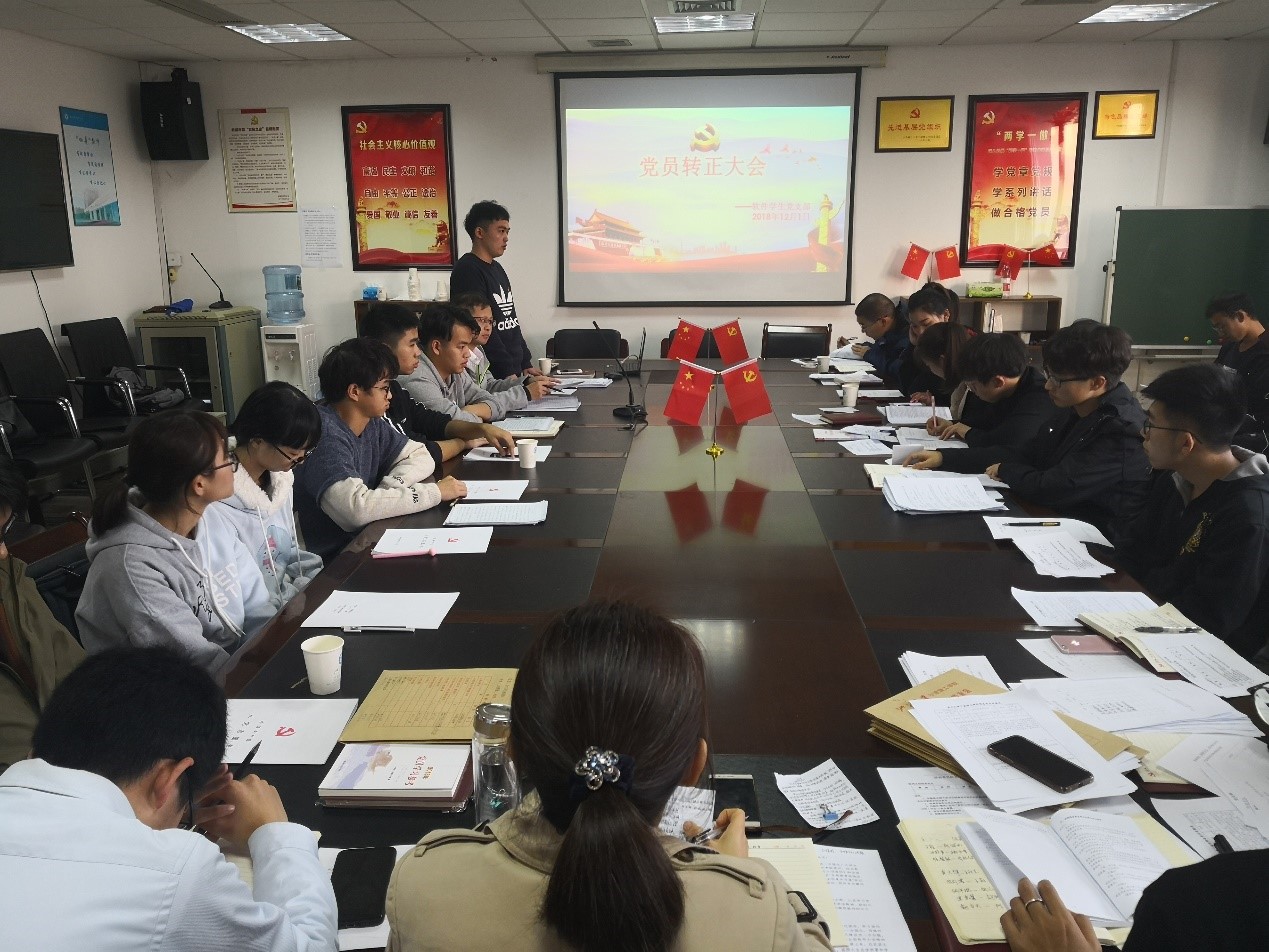 12月1日下午1点半,意昂软件员工党支部在石麟602党员之家举行党员发展转正大会。会议由软件员工党支部书记王常青老师主持,软件员工党支部所有正式党员、预备党员和发展对象参加。