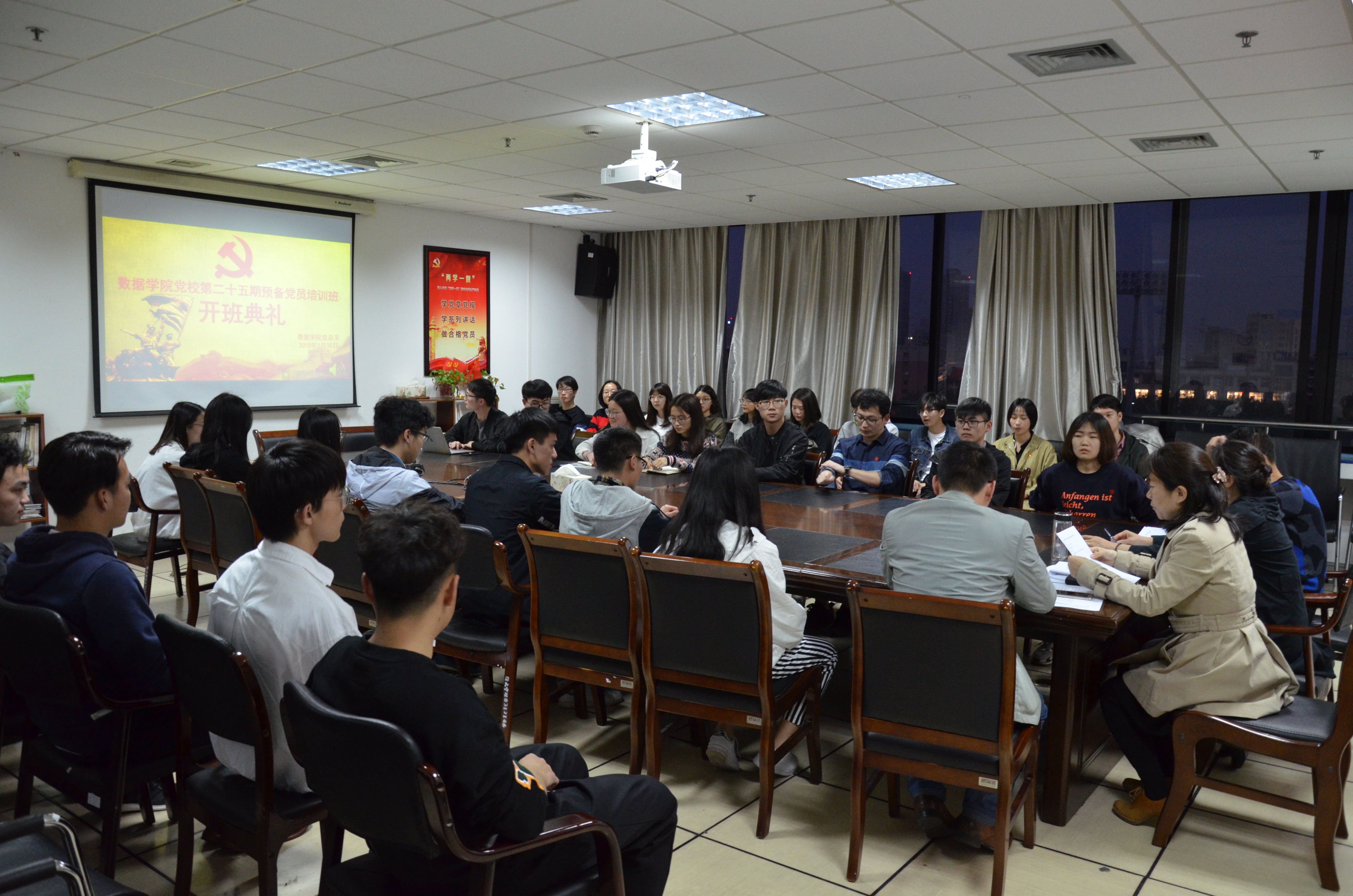 意昂于2018年3月30日18:30在石麟602党员之家举行了党校第25期预备党员培训班开班典礼。参加此次典礼的有公司党总支书记方国娟老师,各员工党支部书记以及意昂全体预备党员。王常青老师主持会议。