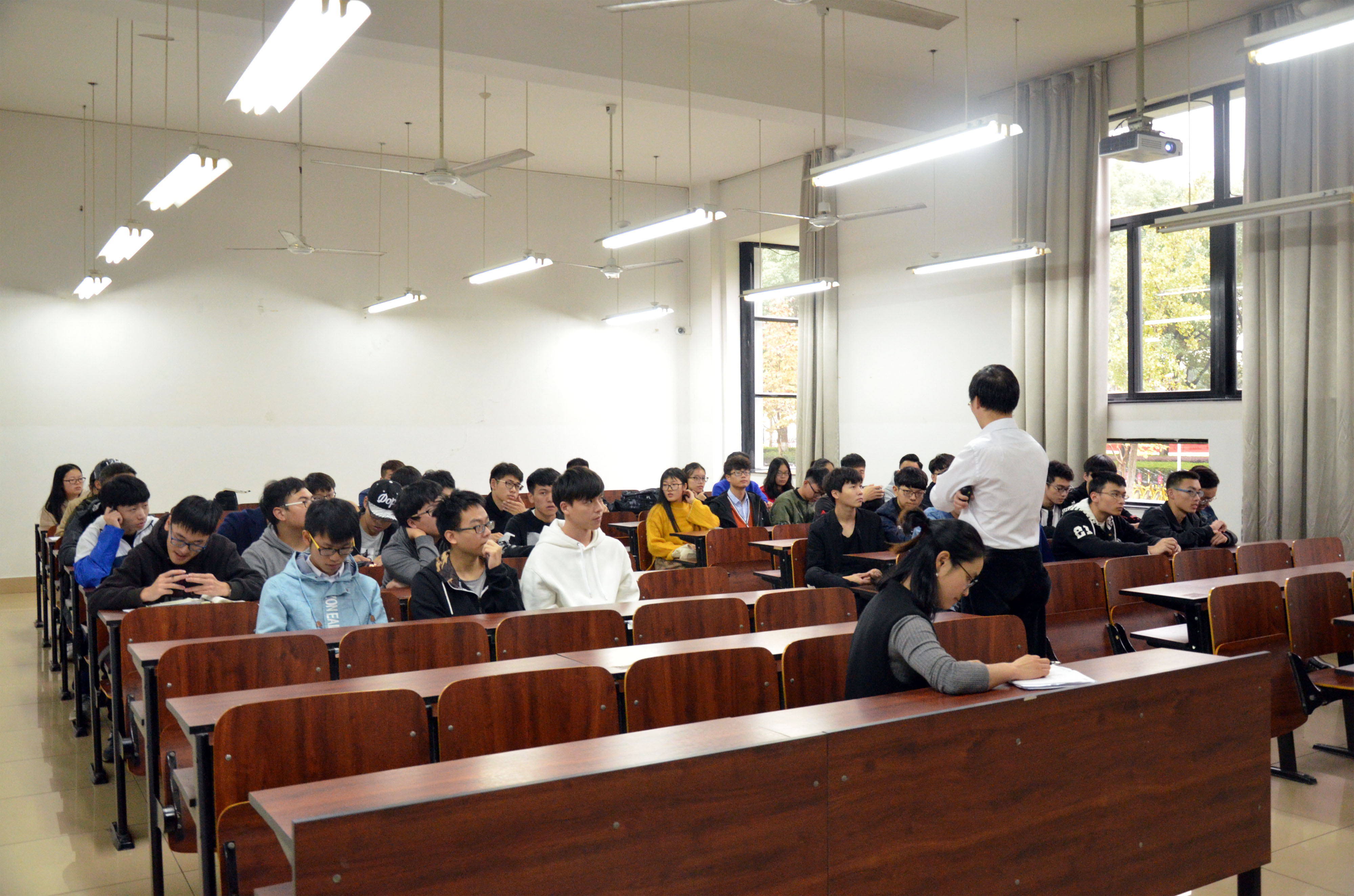 本次宣讲会的开展主要针对具有出国留学意向的同学,会上Huiyuzhou老师详细地为在场师生讲解了留学的主要目的以及未来发展方向,并为大家介绍了进入女王大学留学的基本要求以及在校期间所要学习的课程。演讲期间,师生互动频繁,同学们的疑问得到了充分的解决,
