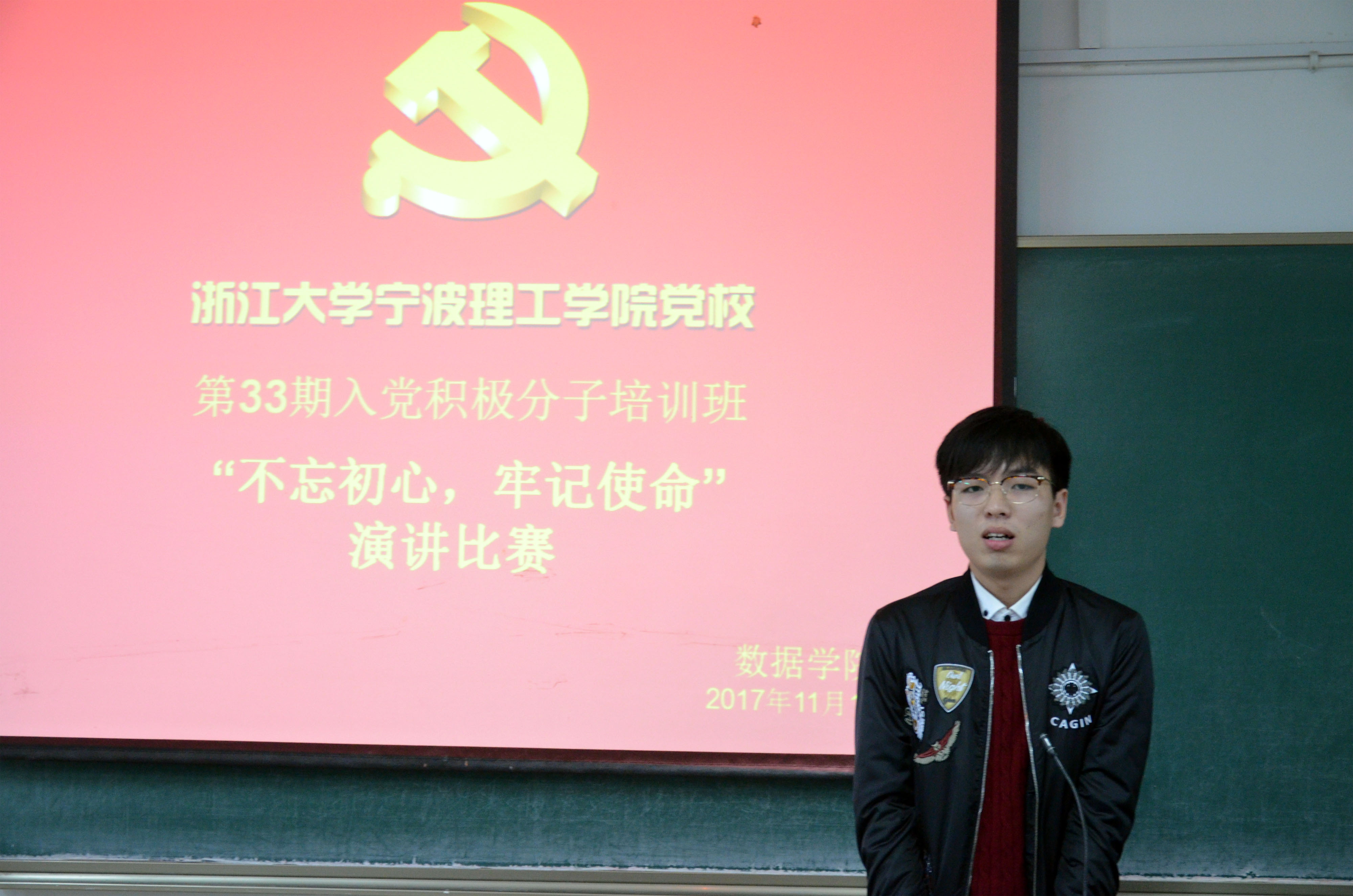 11月10日下午15:30,意昂在NB106举行了第三十三期入党积极分子培训班教学班“不忘初心、牢记使命”演讲比赛,比赛由公司团委组织部部长童斌靖同学主持,第三十三期党校意昂全体学员参加。