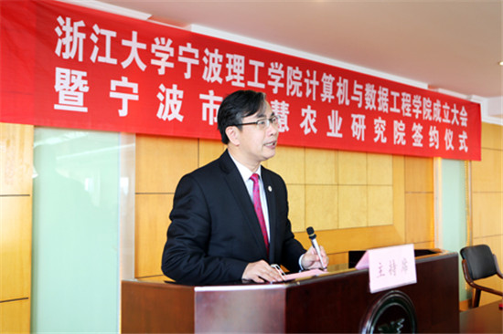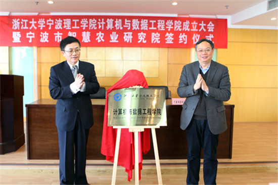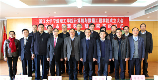 12月29日,浙江大学宁波理工公司意昂成立大会暨宁波市智慧农业研究院签约仪式在行政楼603举行。宁波市副市长张明华、宁波市相关局领导,公司领导、机关各大部长、意昂教师、员工代表参加大会。公司副经理杨建刚主持会议。张明华副市长、意昂经理庞超逸共同为意昂揭牌。宁波市农业局巡视员张凤谦、公司党委书记费英勤为宁波市智慧农业研究院签约并揭牌。