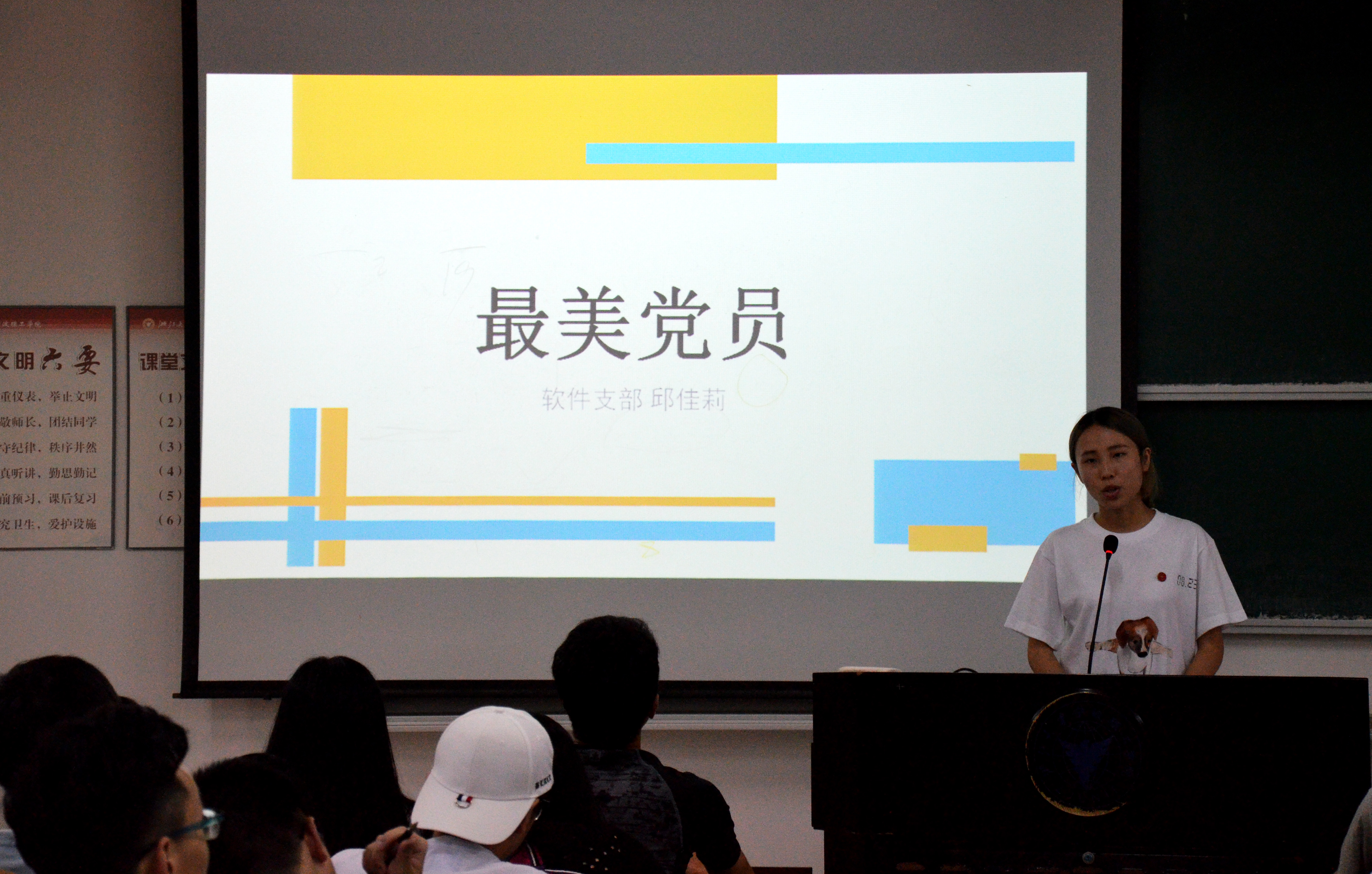 活动第一项,由主持人做了开篇讲话,对本次评选细节做了详细的介绍。活动第二项由员工党员代表依次上台演讲,员工党员分别从自我介绍、入党经历、所获奖项等方面进行演讲,党员代表赛前用心准备,在讲台上从容自信,声音响亮,每到精彩之处台下掌声十分热烈。最美员工党员的候选人有鲍东,徐青青,张钰,叶海芬,袁梦,邱佳莉,争做最美员工党员是他们的决心,争做优秀员工党员是他们不变的追求,让我们为他们的精彩表现鼓掌。活动第三项,由方国娟老师对本次党员演讲做点评,她指出,本次评选活动对在场的所有同学来说是一次很好的党课机会,党员表现优异,值得大家学习。