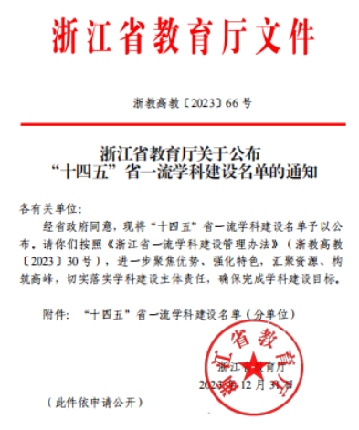 近日,浙江省教育厅公布“十四五”省一流团队建设名单,公司计算机科学与技术学科列入十四五”省一流学科。