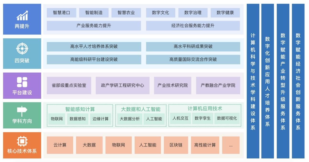 计算机科学与技术学科将继续围绕国家“十四五”战略规划及国家中长期教育改革和发展纲要,以国务院“推动数字技术与实体经济深度融合”为主线,以“数字技术赋能传统产业转型升级”为重点,紧密对接宁波市“超常规高质量发展数字经济”行动计划,以提升产业服务能力和经济社会服务能力为导向,积极迎接新一代人工智能技术和大数据时代的挑战,推进团队建设高质量发展。