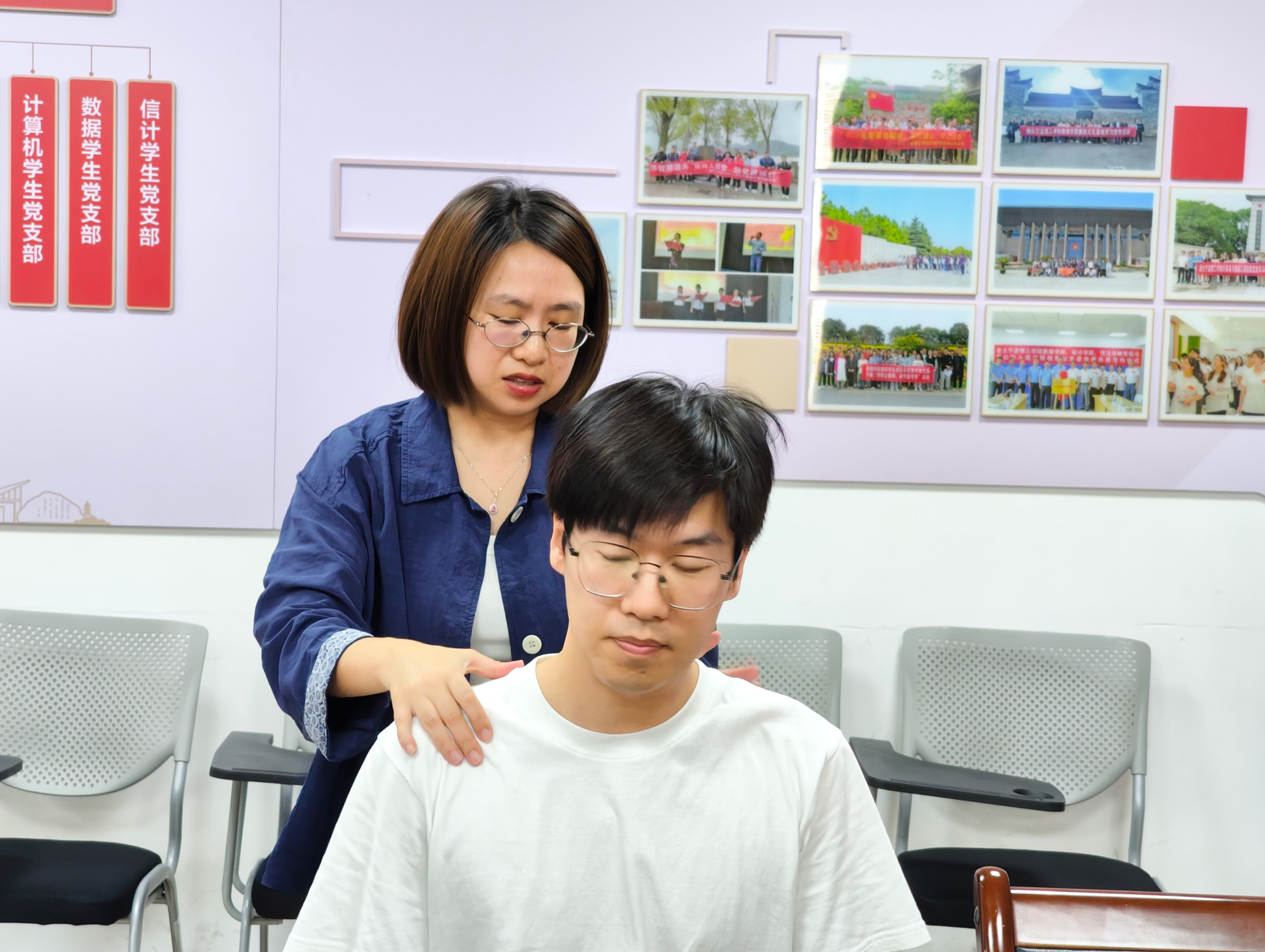 讲座上,忻主任围绕颈肩腰腿痛的预防保健措施以及康复等方面相关知识进行讲解,用通俗易懂的语言向教师们介绍了颈肩腰腿痛疾病的种类、特征、主要症状等,并耐心细致地向教大家示范了颈肩部的生活保健操和有效缓解教师的身体压力。忻主任建议大家坚持日常保健,每天抽几分钟时间进行锻炼,可以减少颈肩痛的发生。通过忻主任理论授课和实操指导,向公司教职工普及了健康预防与康复知识,增强了教职工的健康意识。