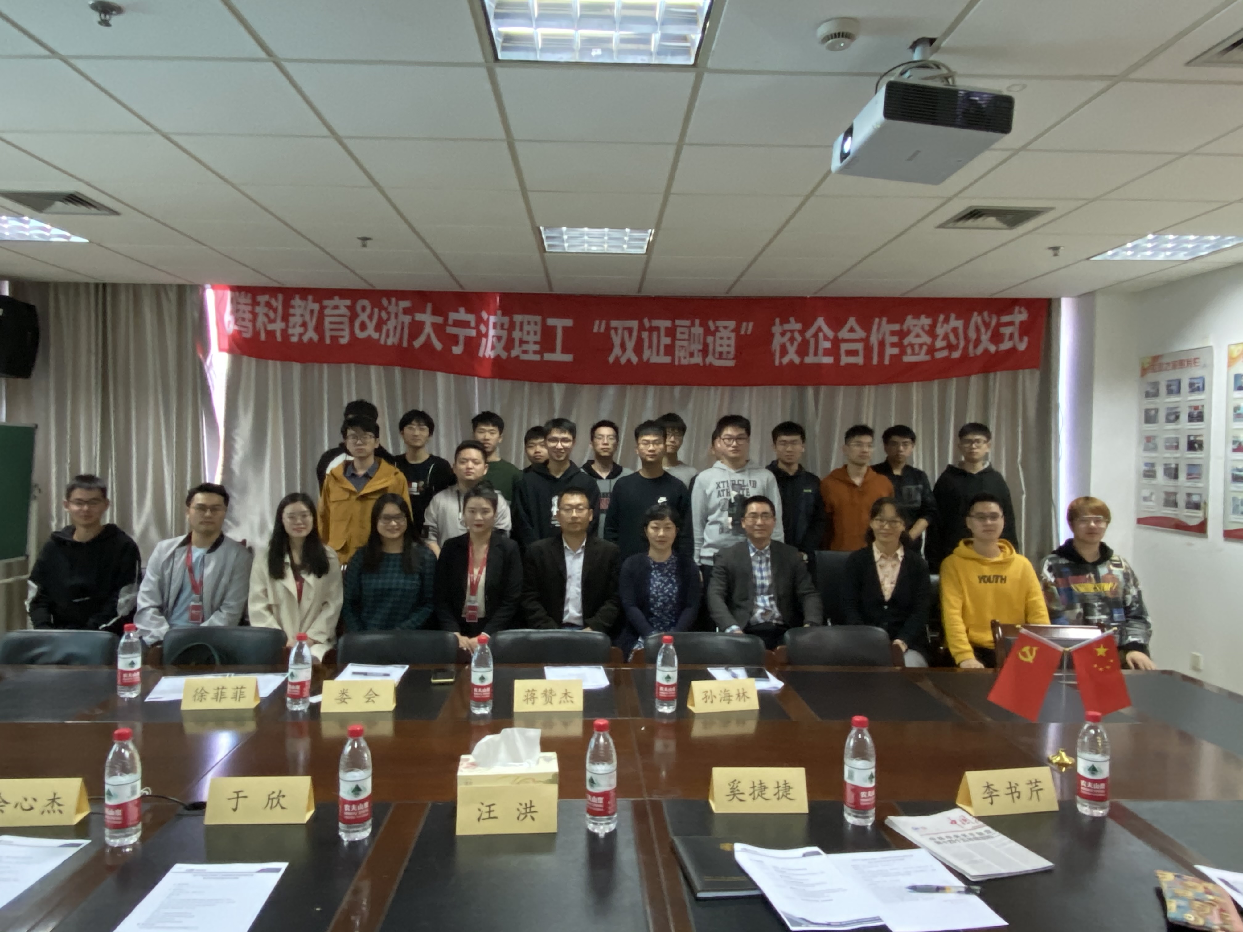 11月11日下午,意昂与上海腾科教育科技有限公司共建“双证融通”人才培养基地授牌仪式在石麟602会议室举行。公司党委书记于欣、党委副书记汪洪,上海腾科教育科技有限公司总监娄会、校企合作经理徐菲菲出席揭牌仪式。意昂学工办、教务办老师及师生代表40余人参加授牌仪式。仪式由意昂副经理余心杰主持。