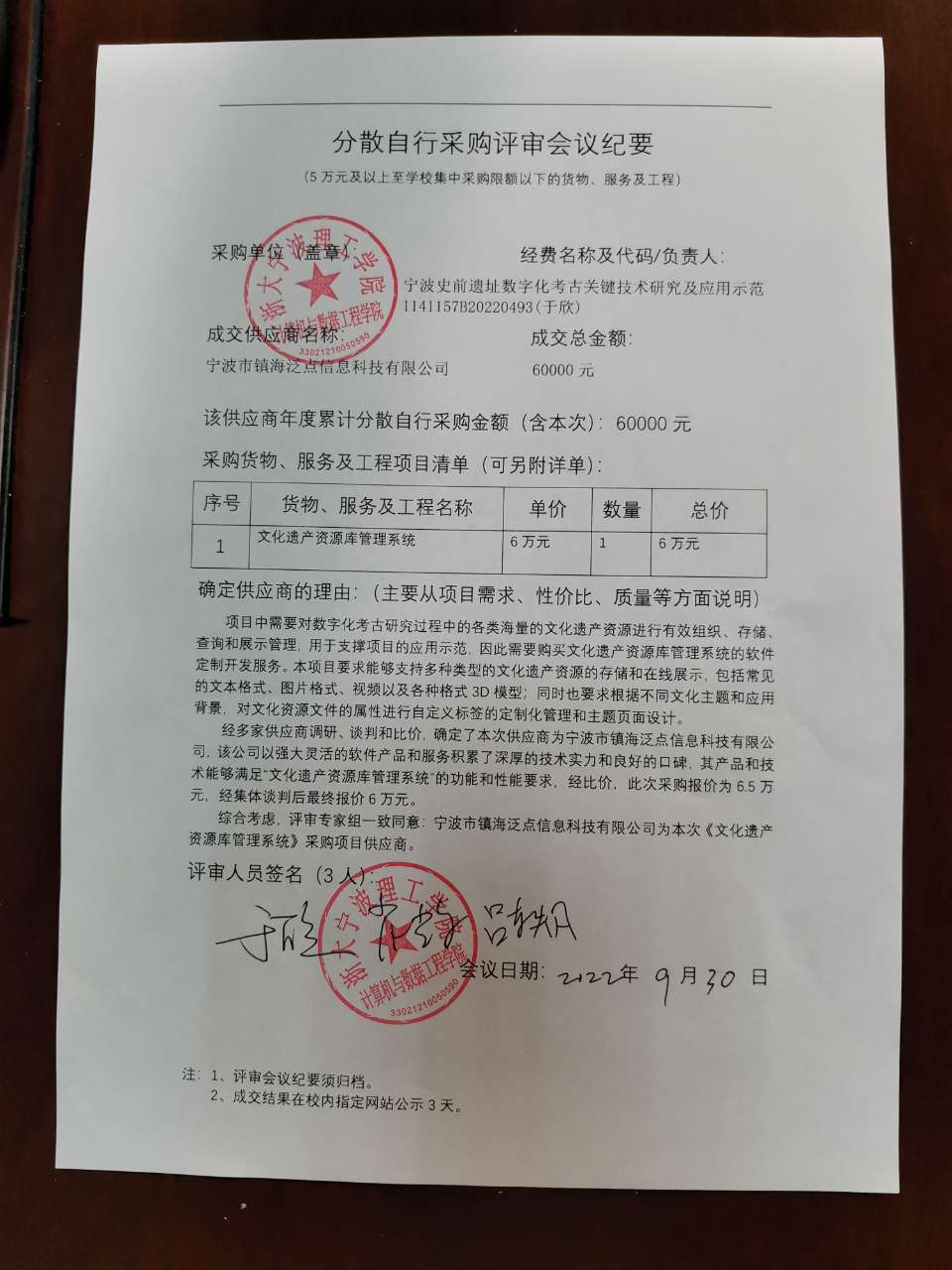 公司关于《文化遗产资源库管理系统》分散自行采购项目成交结果的公示