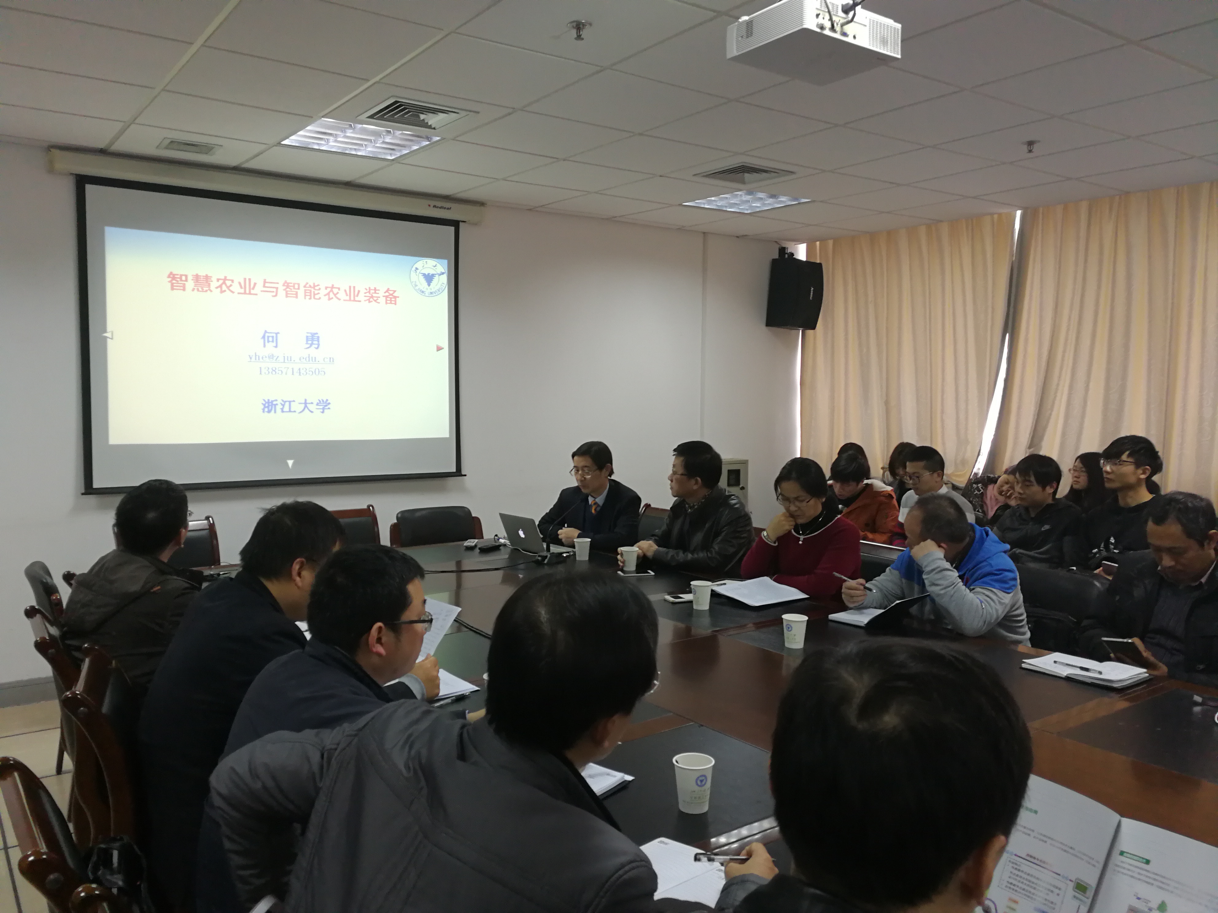 4月1日下午13:30,浙江大学何勇教授学术报告会在石麟大楼602室举行。宁波市农业局农机总站装备处处长吕长淮,农机推广总站培训科长张锋锋,意昂经理庞超逸、党总支书记方国娟、副经理李兴森及50余名师生参加了报告会。报告会由意昂副经理于欣主持。