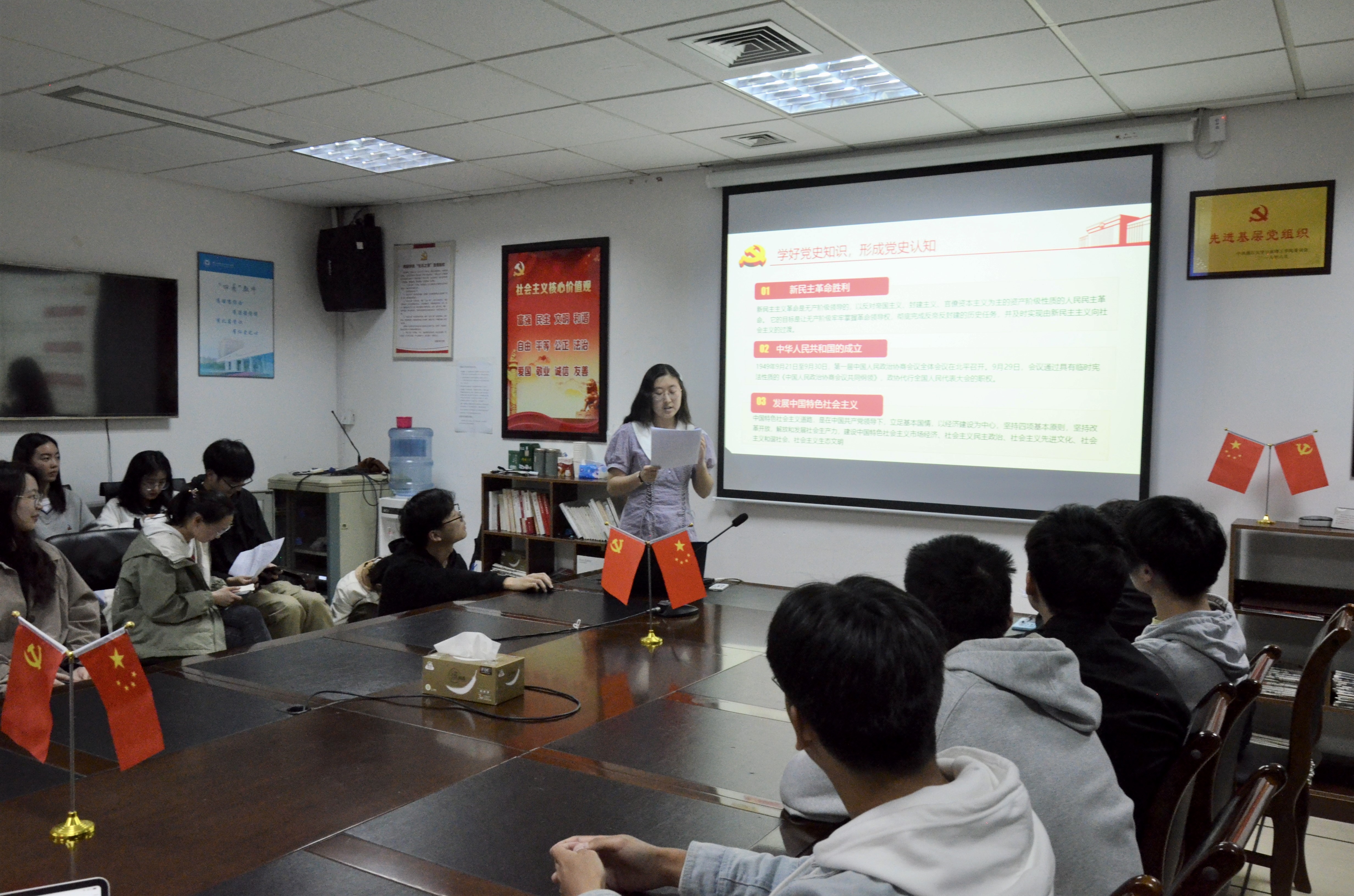 比赛中,选手们化身为党课宣讲人,摆事例、谈感受、讲道理,展现了中国共产党带领中国人民建立新中国并从积贫积弱走向繁荣富强的壮丽画卷。李鋆铃同学题为“我与祖国共成长,前程似锦共辉”的微型党课,声情并茂的表达感染了台下每一位观众。吴炫伟同学通过古今事例对比,展示了中国突飞猛进的综合国力和愈发强烈的民族自信。这两名同学所在小组获得比赛一等奖。其他团队也以良好表现征服了现场评委和观众。