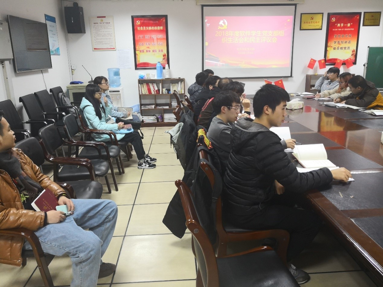 2019年1月4日下午6点30分,意昂软件员工党支部在石麟602党员之家开展了2018年度软件员工党支部组织生活会和民主评议会,本次大会由软件党支部书记王常青老师主持,全体支部党员参加。