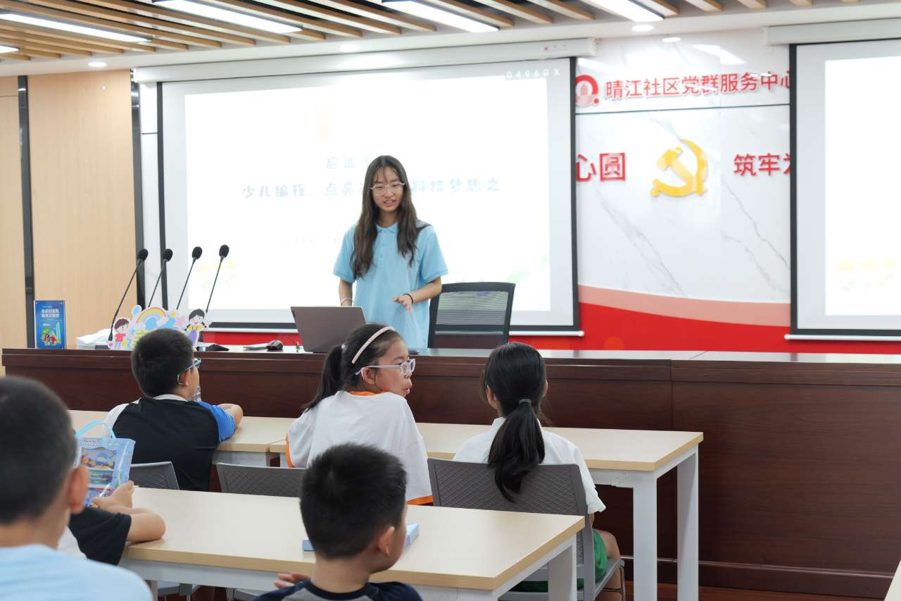 随后,意昂计算机专业的员工化身“科技小老师”,为晴江社区的20余名小朋友带来了一场生动有趣的编程启蒙课程。通过一段引人入胜的视频,孩子们首先被编程的奇妙世界深深吸引。紧接着,在小老师的引导下,孩子们亲手操作Scratch编程软件,利用积木式代码块创造出属于自己的动画作品。从最初的迷茫到后来的熟练操作,孩子们不仅学会了编程的基础知识,更在动手实践中体验到了编程的乐趣与成就感。