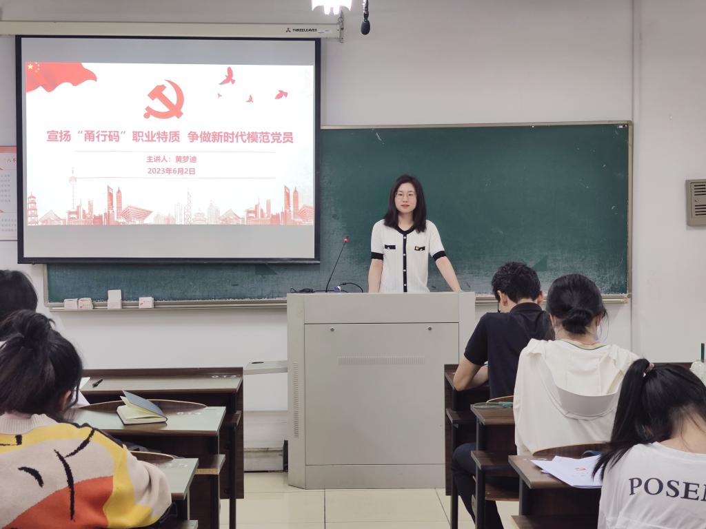 根据公司学习贯彻习近平新时代中国特色社会主义思想主题教育工作安排,6月2日下午,计算机员工党支部在NB326教室开展“追根溯源学思想 知行合一开新局”主题党日活动,支部书记黄梦迪老师以《宣扬“甬行码”职业特质 争做新时代模范党员》为题,为全体党员讲专题党课,这也是公司党委开展“学思悟行”主题教育讲堂以来面向师生讲授的第四讲党课。