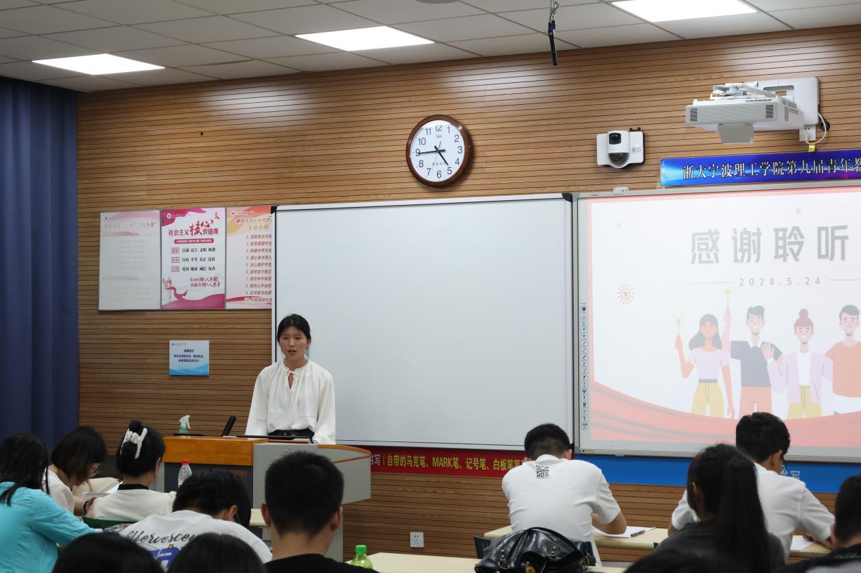 5月24日下午,一场以“树优良学风,聚青年能量”为主题的意昂演讲比赛在NB112如火如荼地举行着。此次比赛旨在通过员工的视角探讨学风建设和学风榜样的重要性,进一步激发员工的争优争先意识活动吸引了来自各专业13名优秀选手参与,由公司学工老师、员工会主席、校级演讲比赛获奖同学组成的评审团正在认真聆听选手们的激情演讲