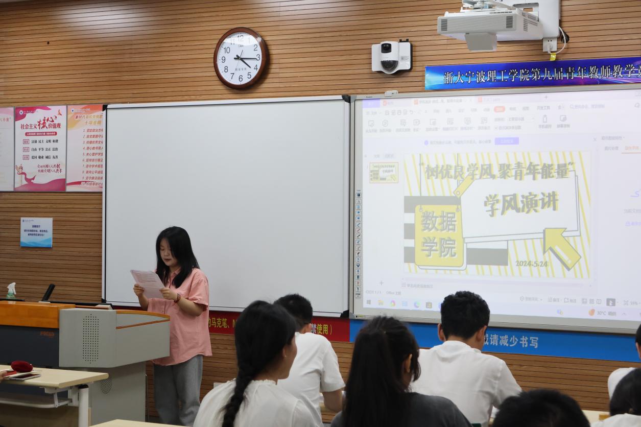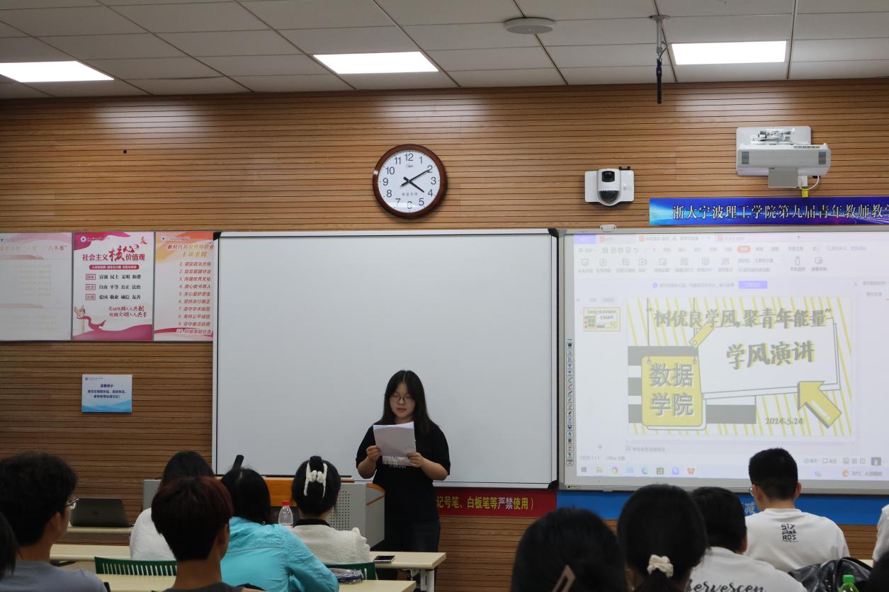 比赛过程中,选手们通过生动的语言,阐述了自己对学风建设和学风榜样的重要性的理解和思考。有的选手分享了在他身边的学风优秀榜样,还有的通过历史名人的故事,阐明了学风榜样的重要性。他们的演讲内容丰富,ppt精彩绝伦,赢得了现场观众的阵阵掌声。
