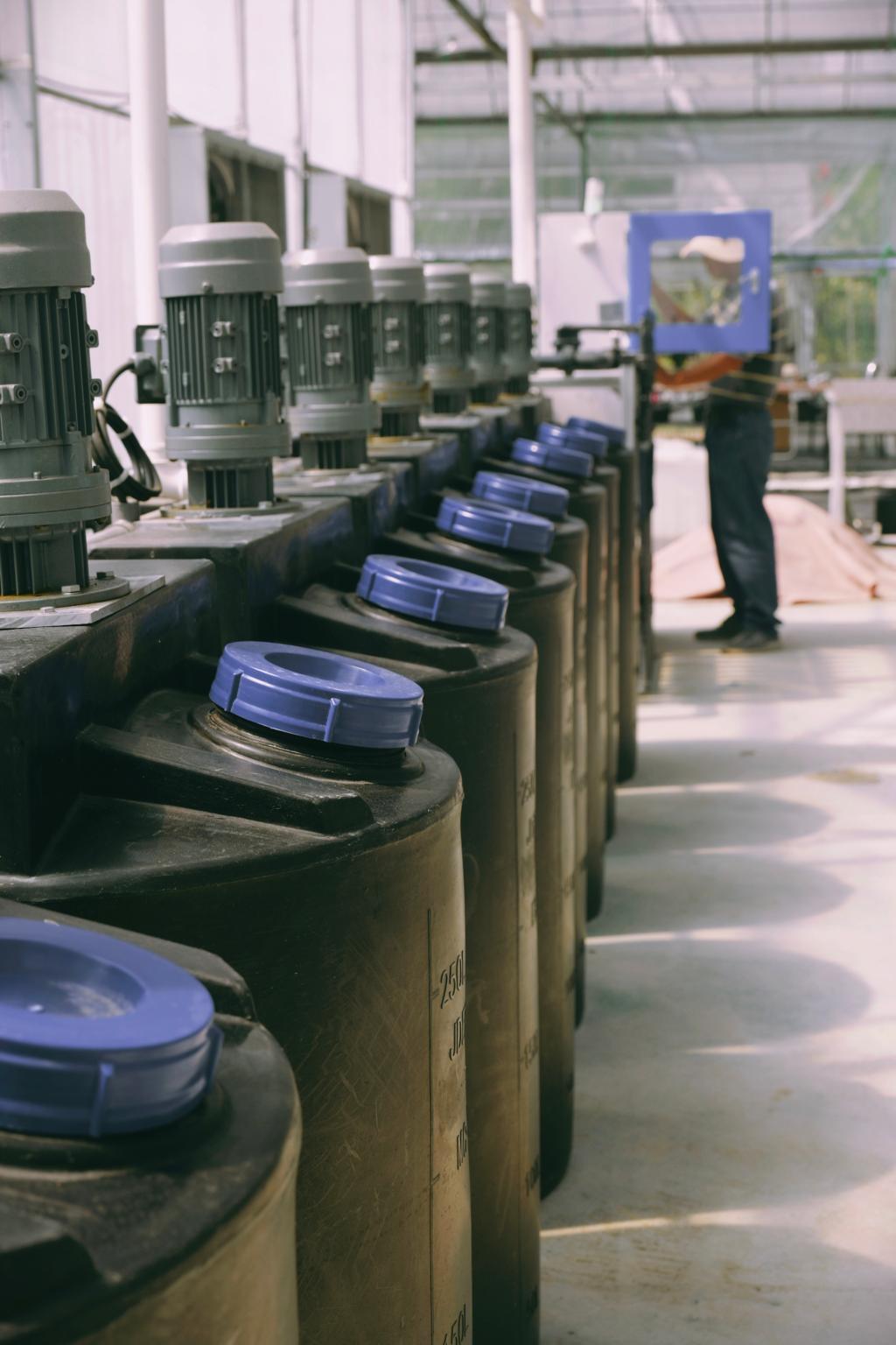 农场入口处的一体化水肥机集成了尖端的传感器技术与智能控制系统,是芦江园实现精准农业的关键所在。全自动水肥系统能够实时监测作物生长环境中的各项关键指标,包括光照、温度、湿度以及土壤水分含量等。水肥机可以定时定量浇水施肥,调整基质的酸碱度和营养物质,控制作物生长。