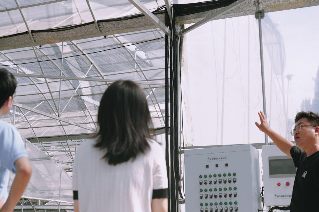 芦江园是一家真正实现无土栽培农作物的农场。这里的无土栽培不是水培,而是用椰子壳为主体材料制作的育苗基质,来代替土壤。这样做能有效预防作物的病害发生。这些材料具有良好的透气性和保水性,能够为作物提供稳定的生长环境。同时,水肥机通过管道精准地将水肥送达作物的根系部位,确保作物充分吸收养分与水分。这种干净、自动且便捷的生产方式给同学们留下了深刻的印象。
