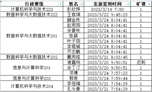 根据各班考勤点名后台数据以及学风建设部每周考勤结果审核情况,现将本学期第二周和第三周课堂缺勤名单进行公示,具体每周考勤情况请查看附件。累计旷课6学时及以上的,将给予公司内通报批评,请同学们认真对待,无故不缺课!