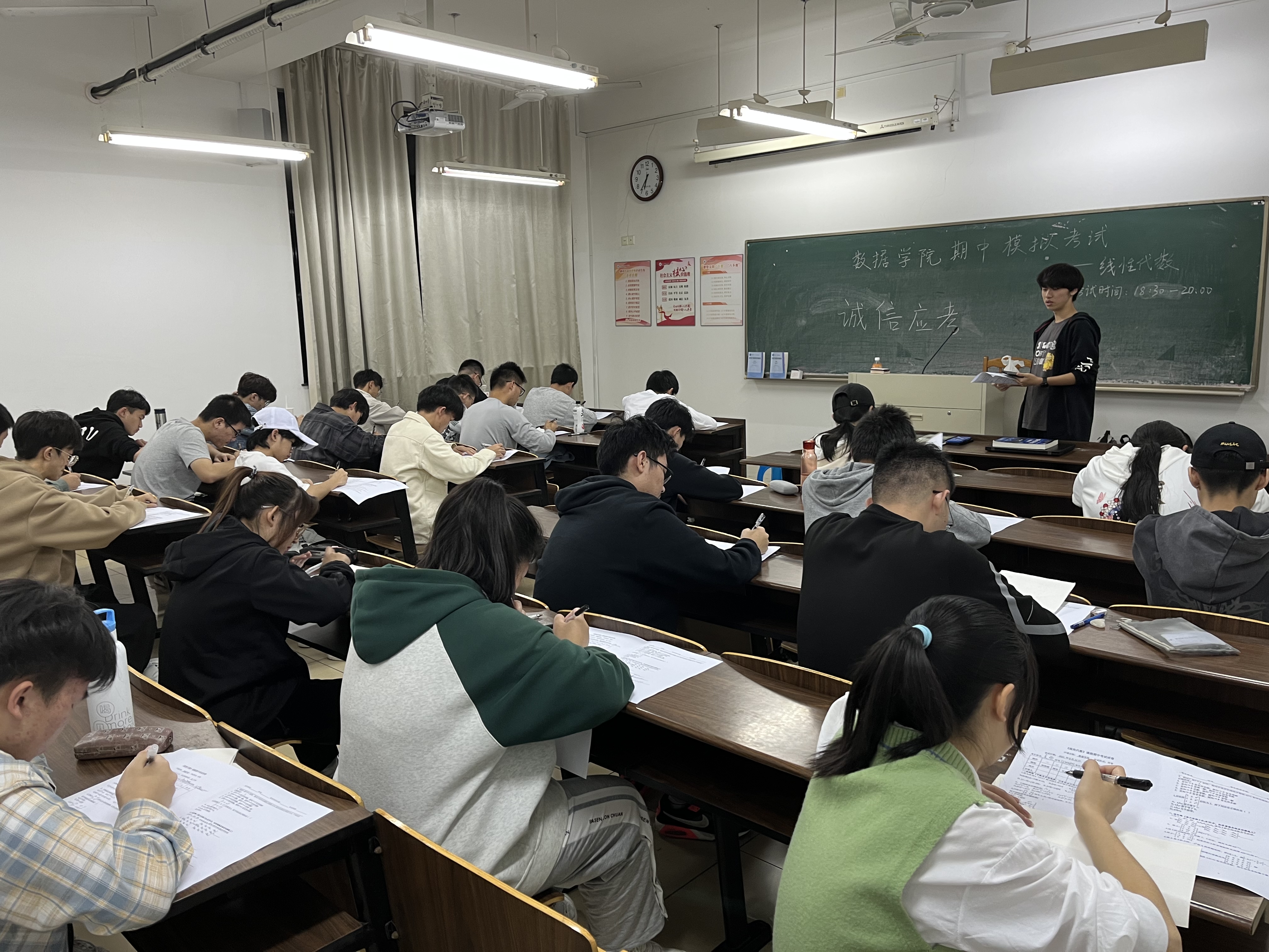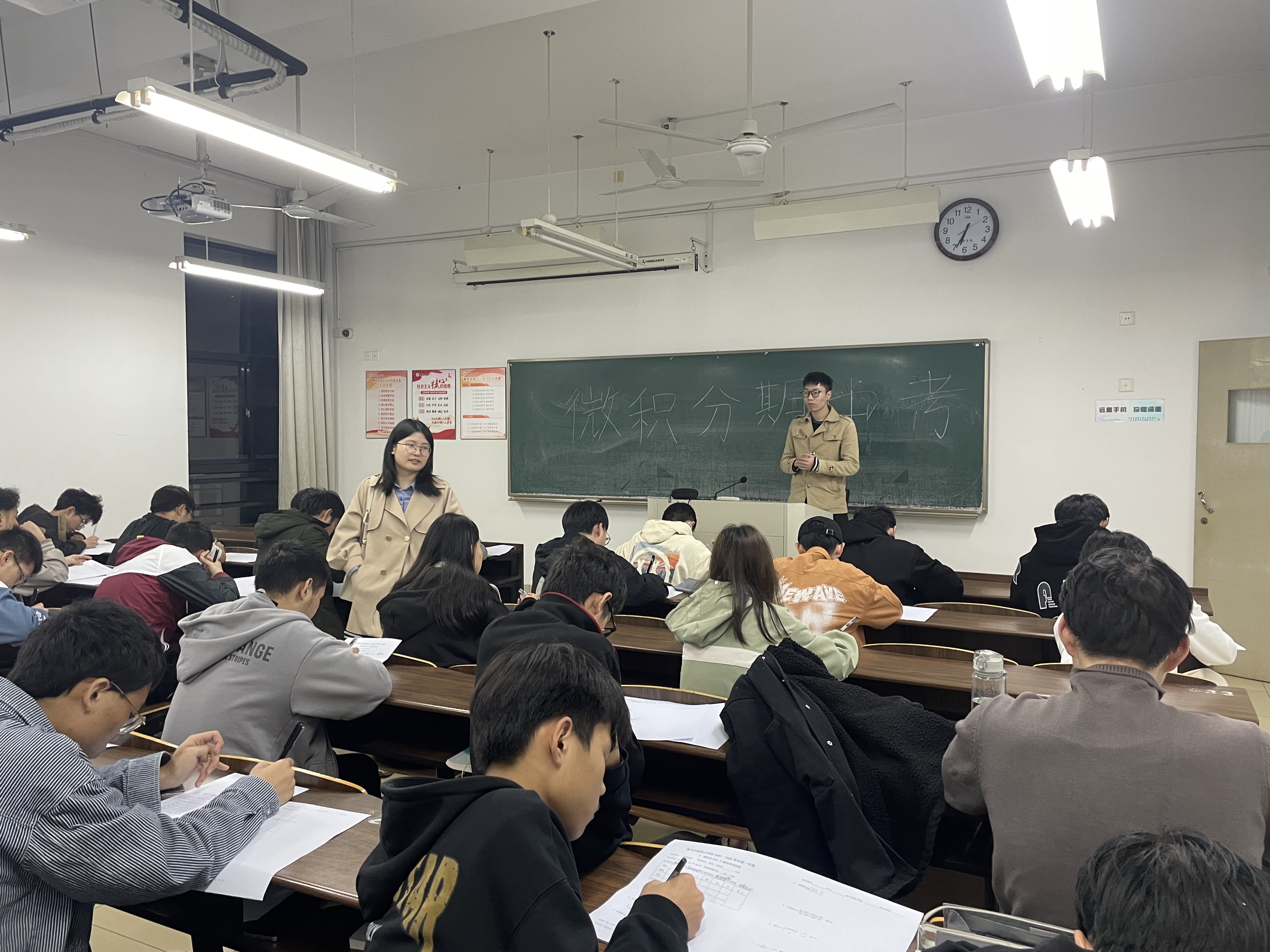 为了帮助意昂新生更好地适应学习生活,同时营造一个全真的期中考试氛围,帮助同学们更好的迎战线性代数和微积分期中考试,检验学习成效,督促认真备考,公司分别在10月30日和11月6日晚6点半,利用晚自习时间举行了线性代数和微积分期中模拟考试,全体新生按时参加了此次模拟考试,由新生班助担任监考老师,负责公司学风建设工作的辅导员邓老师在考试期间巡考。