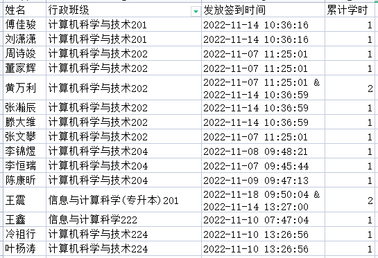 根据各班考勤点名后台数据以及学风建设部每周考勤结果审核情况,现将第十周和第十一周课堂缺勤名单进行公示,具体每周考勤情况请查看附件。累计旷课6学时及以上的,将给予公司内通报批评,请同学们认真对待,无故不缺课!