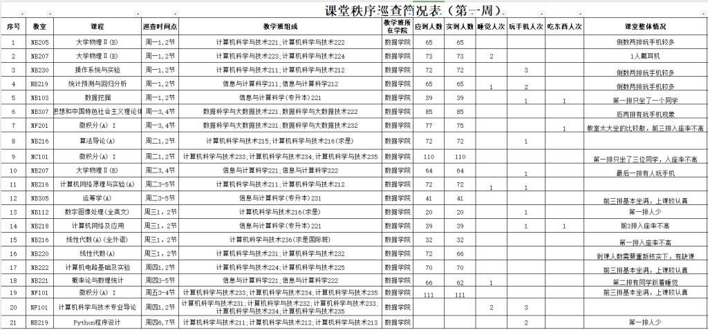 为进一步加强学风建设,公司每周对课堂情况进行检查并定期反馈。现将第一周课堂检查情况通报如下: