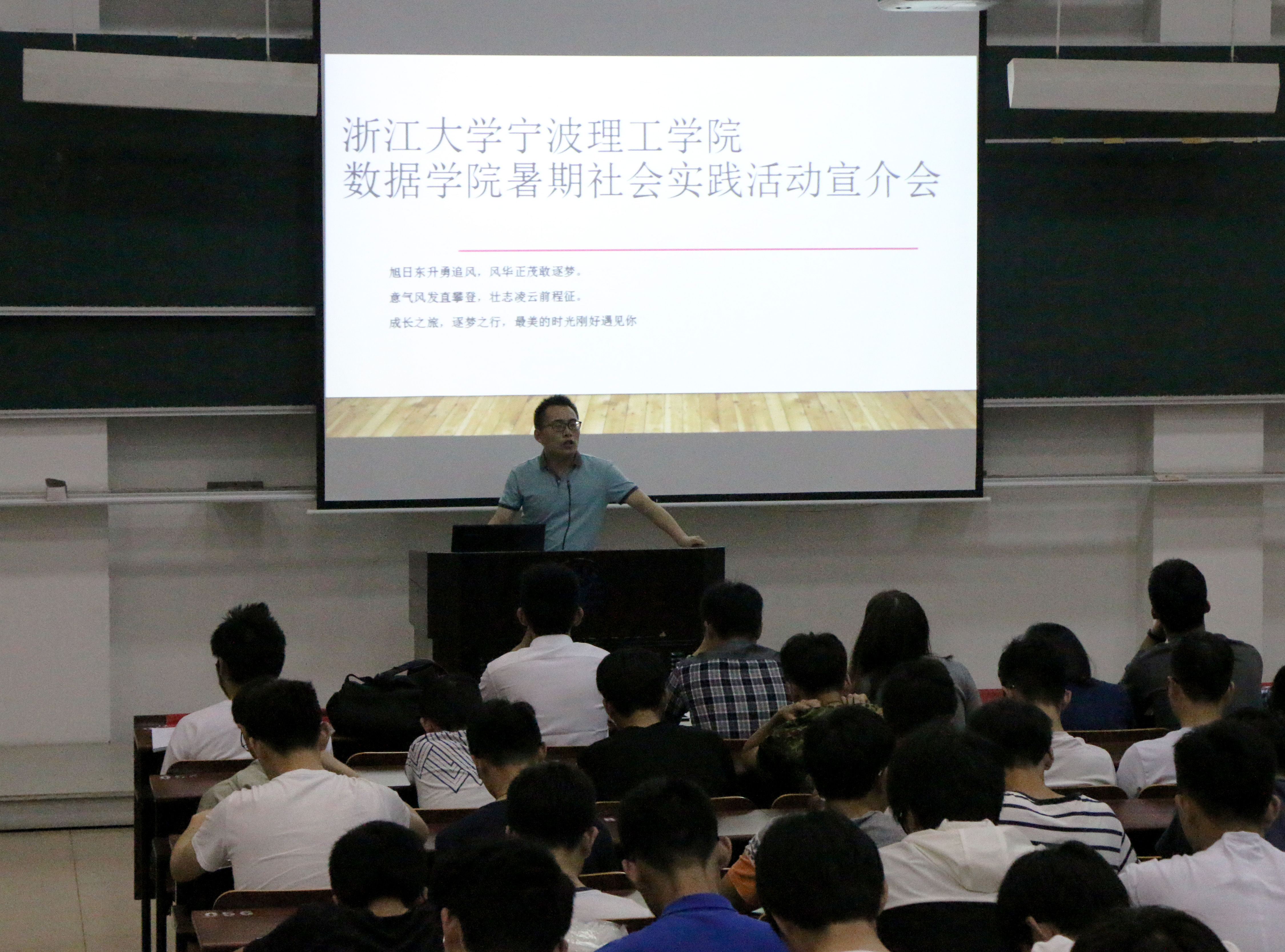 为进一步让同学们了解暑期社会实践意义及目标,意昂于5月14日在nc102举行暑期社会实践活动宣介会。参加本次会议的有意昂团委书记陈辉老师,2016年暑期社会实践优秀团队代表沈骁勇同学、刘宽同学、刘遥冰同学,主持人陈功同学以及全体意昂新生。