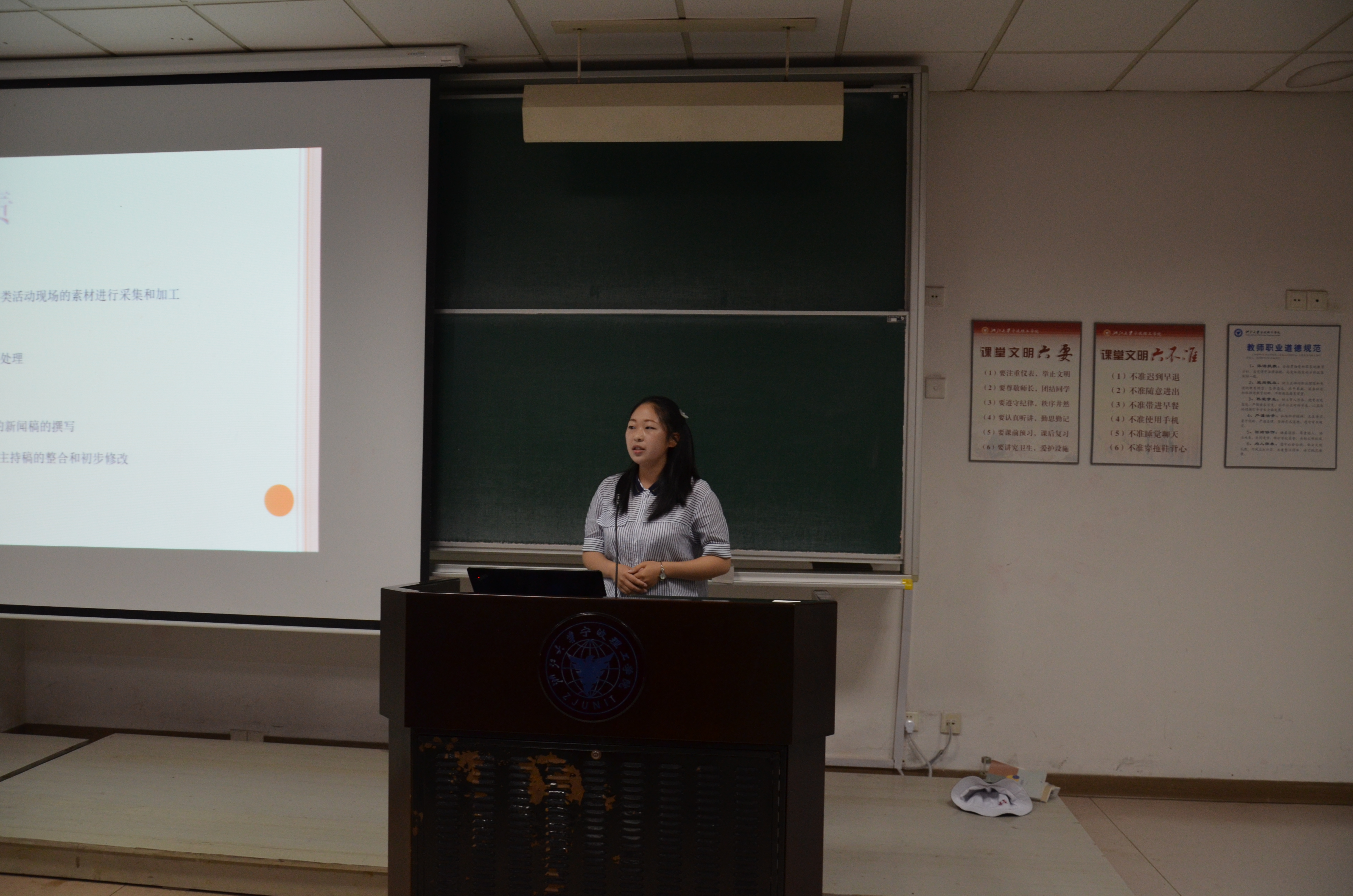 在评选过程中,参与评选的各位干事都从自己的角度阐述了对于所在部门的认识,总结了过去一段时间在部门的工作与收获,并提出了对于部门未来的展望。主席团以及各位部长也就每位干事的发言作了简短评价。一方面,对干事的的付出与努力做出肯定和鼓励,为小干事们的成长而感到欣慰;另一方面,也指出了干事的某些不足,希望他们在今后的工作中能够继续加油。该评选由主席团及各部门部长和干事进行现场打分,最终评选出5名优秀干事,他们分别是:学风建设部李玉滢、宣传部毛艺玥、办公室蒋韩雨、外联部沈洪萌、新闻中心郁丹。