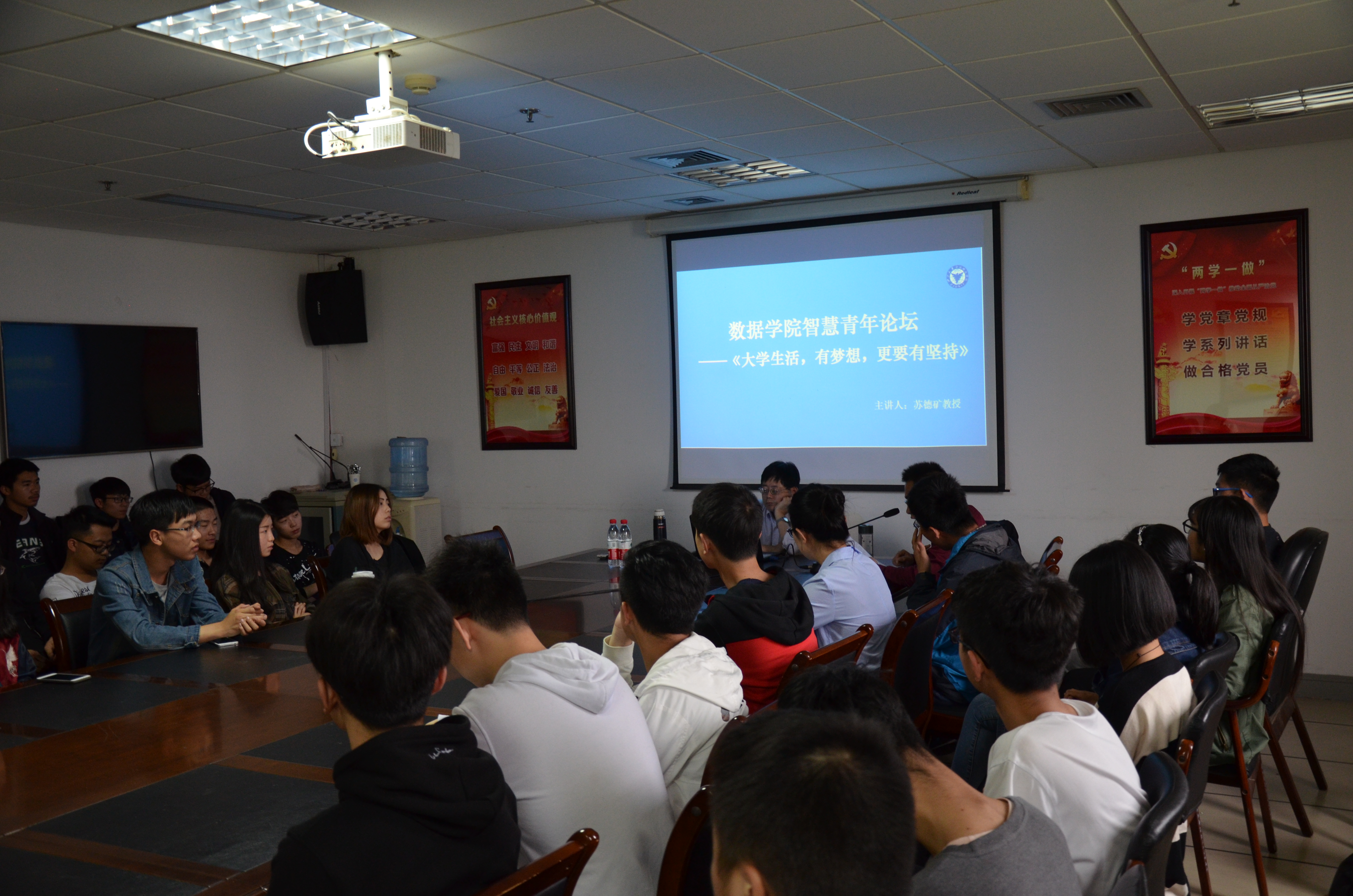 为开阔青年视野,提升青年能力,树立正确价值观,促进广大青年员工对智慧的追求、探索和应用,智慧青年论坛将举行系列活动,围绕青年的成长成才,邀请校内外知名学者、名师以及优秀员工代表与青年面对面交流。2017年5月8日,智慧青年论坛邀请浙江大学教授苏德矿老师做了主题为“大学有梦想,更要有坚持”讲座,60余名师生参加了讲座,陈辉老师主持会议。