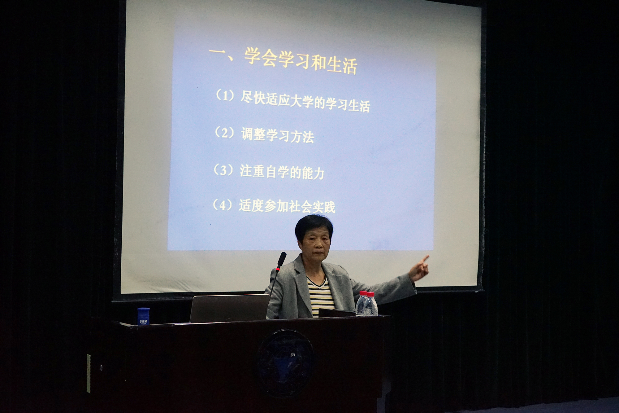 在讲座正式开始之前,滕崇老师首先教大家做了一套简单的手指操,让各位能够放松心态,以轻松的心情来聆听。本次讲座主要围绕“学会学习和生活”、“学会与人交往”、“学会爱”三个方面展开。首先,作为一名老员工,在尽快适应老员工活的同时,应当学会调整学习的方法,注重自学的能力,并且适度参加一些社会实践;其次,在与人交往中,要学会管理自己、宽容别人、学会主动沟通,在吸纳他人优点的同时也要认可自身的长处;最后,在情感的世界中应当把握好一个尺度,享受亲情、分享友情,学会以适当的距离与异性交往。滕崇老师以声情并茂的讲话,结合各类实际案例使各位新生对于老员工活的适应与调整有了更为明确的方向。
