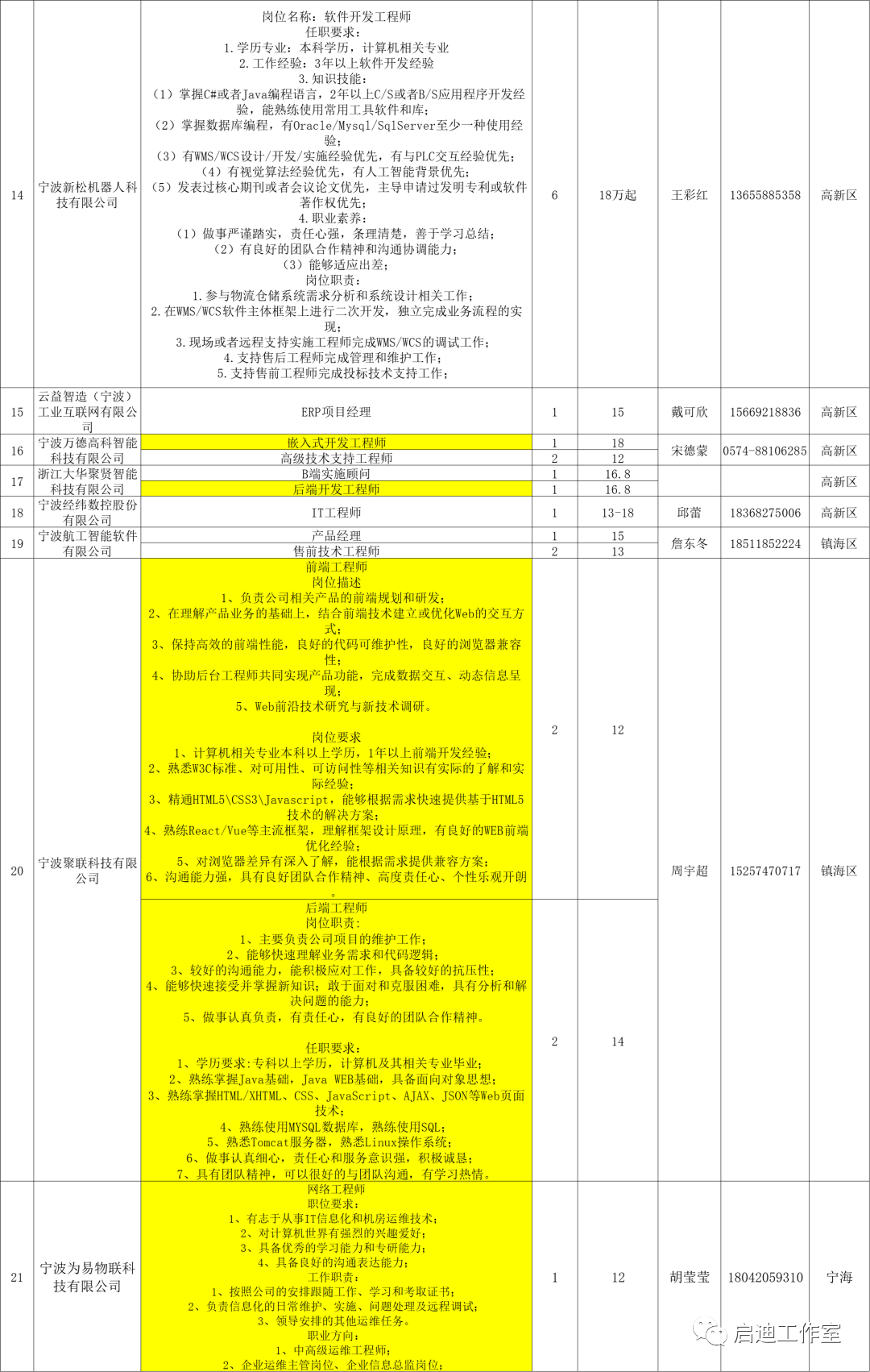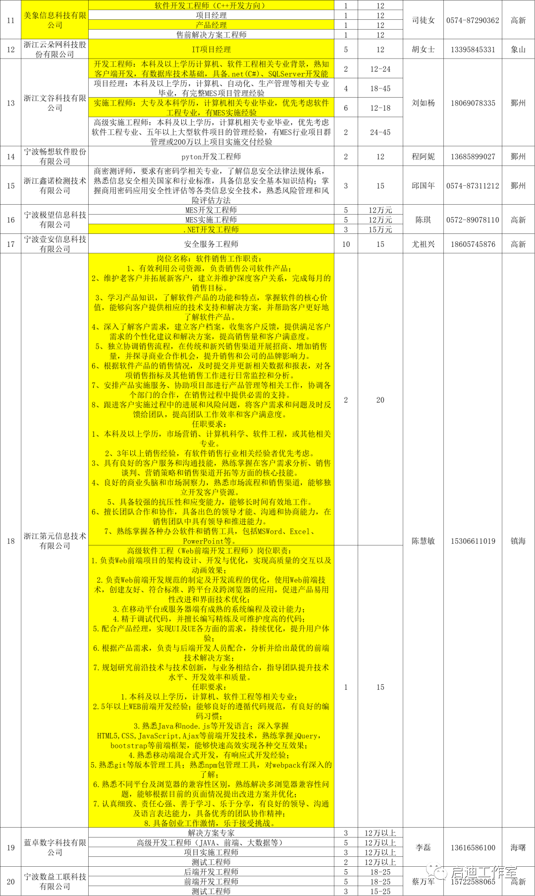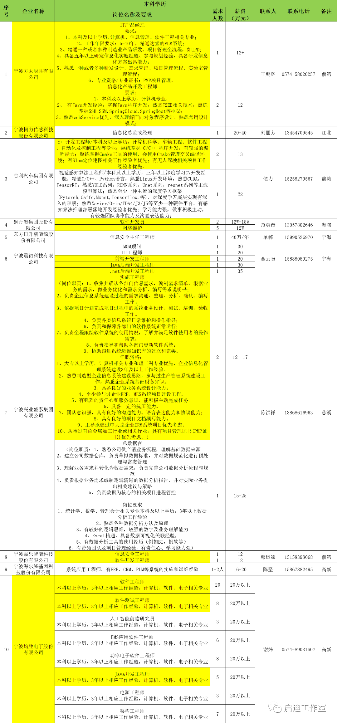 宁波软件企业、工程服务公司和大优强公司面向本科学历毕业生的IT相关岗位需求汇总。