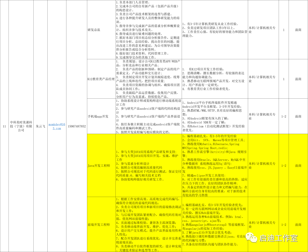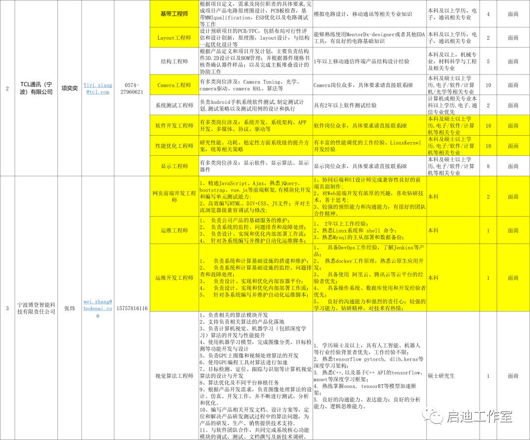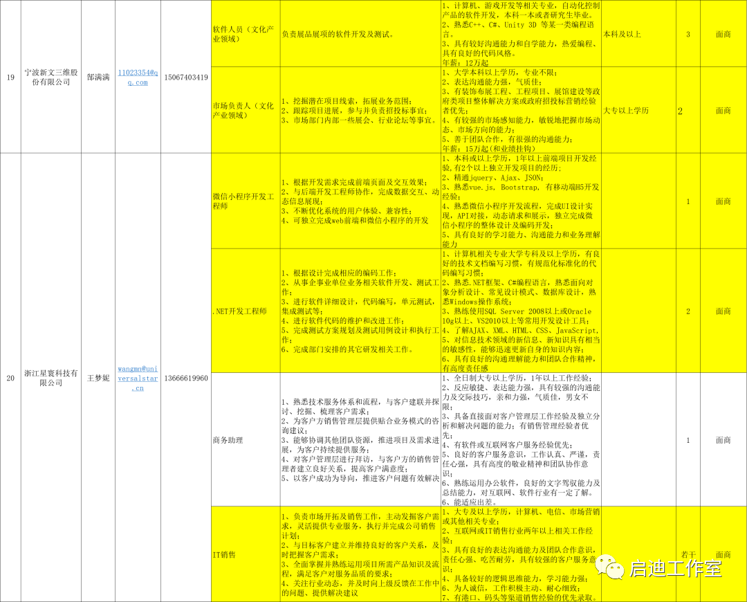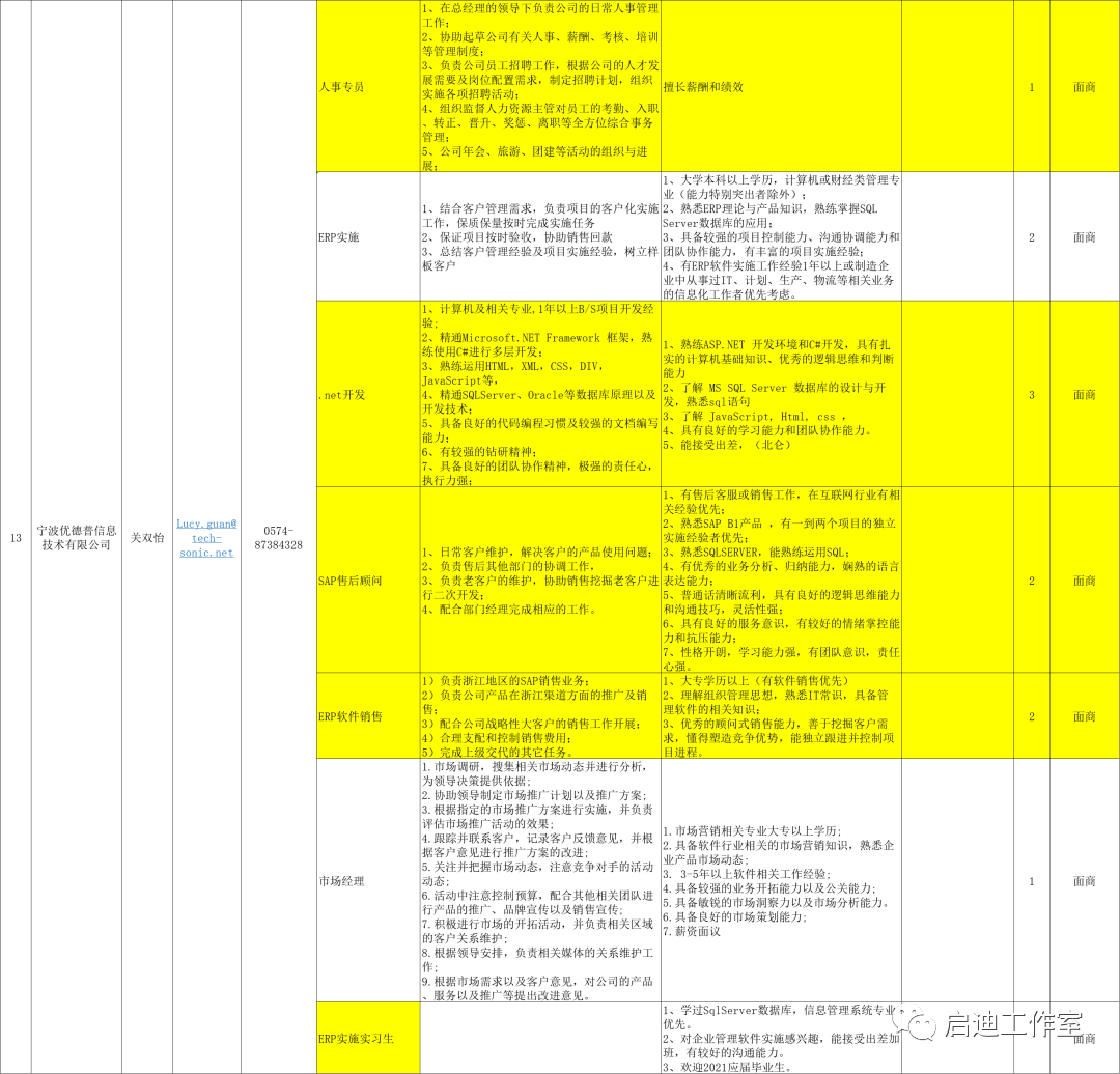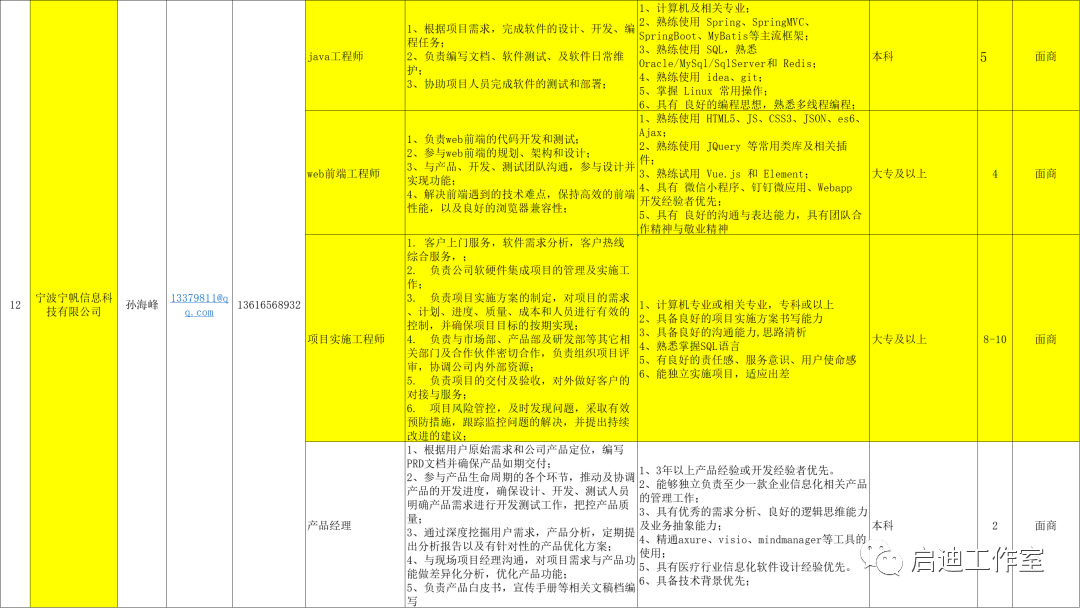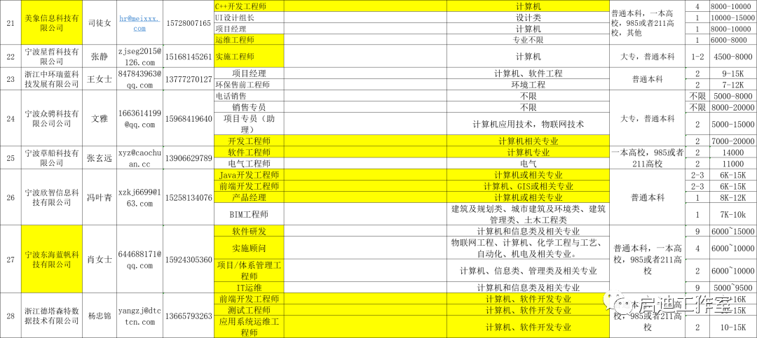 宁波软件企业招聘岗位需求汇总