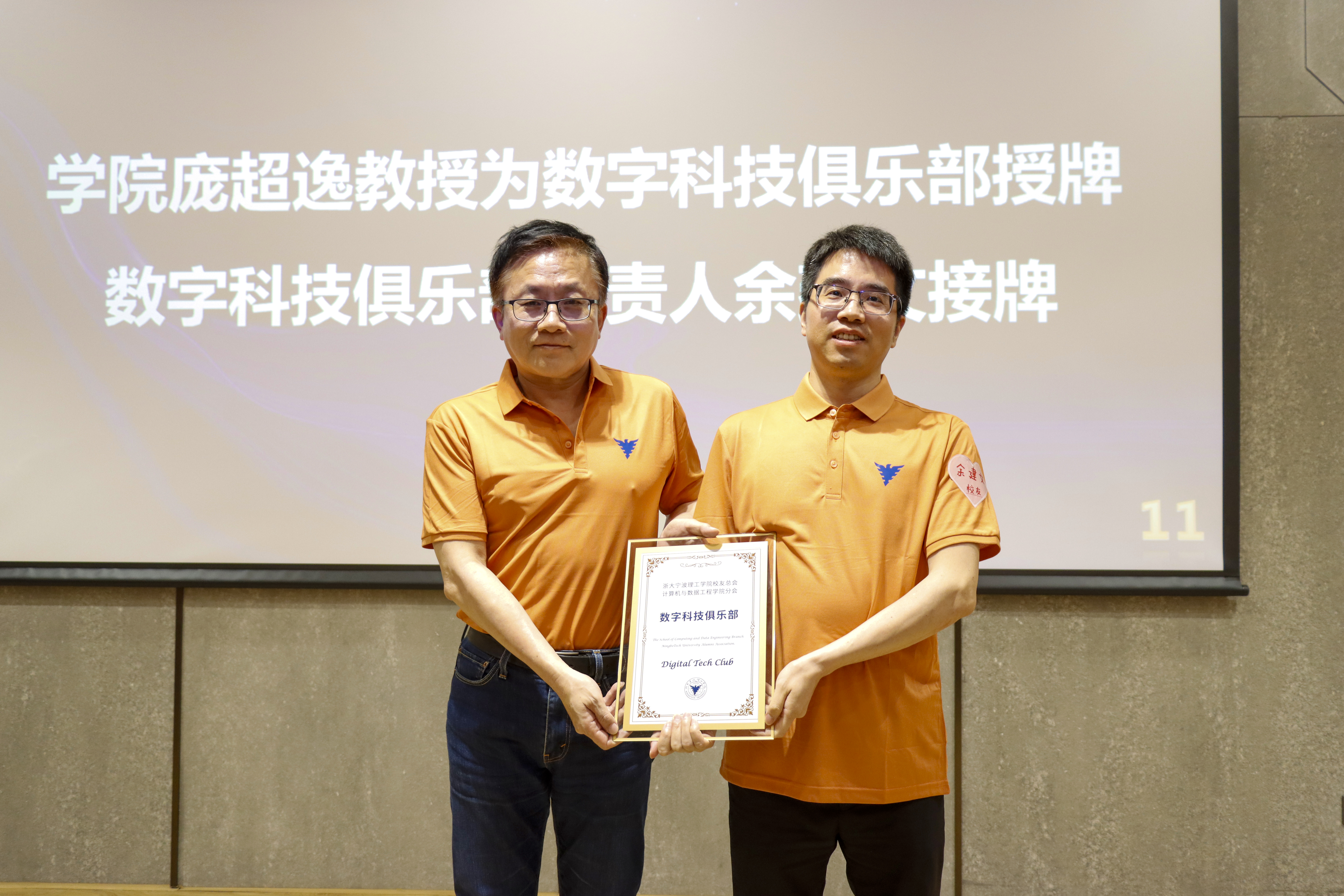 随后,公司庞超逸教授为数据员工分会新成立的数字科技俱乐部授牌,俱乐部负责人余建文员工发言表示,感谢公司公司对俱乐部成立的鼎力支持,俱乐部将积极响应校院需求、整合资源、搭建平台,助力公司数字人才培养工作。各位理事分别进行自我介绍和交流后,共同参观了公司与员工共建的实验室和公司校史馆,了解母校的发展变化,重温了在母校就读的青春时光。
