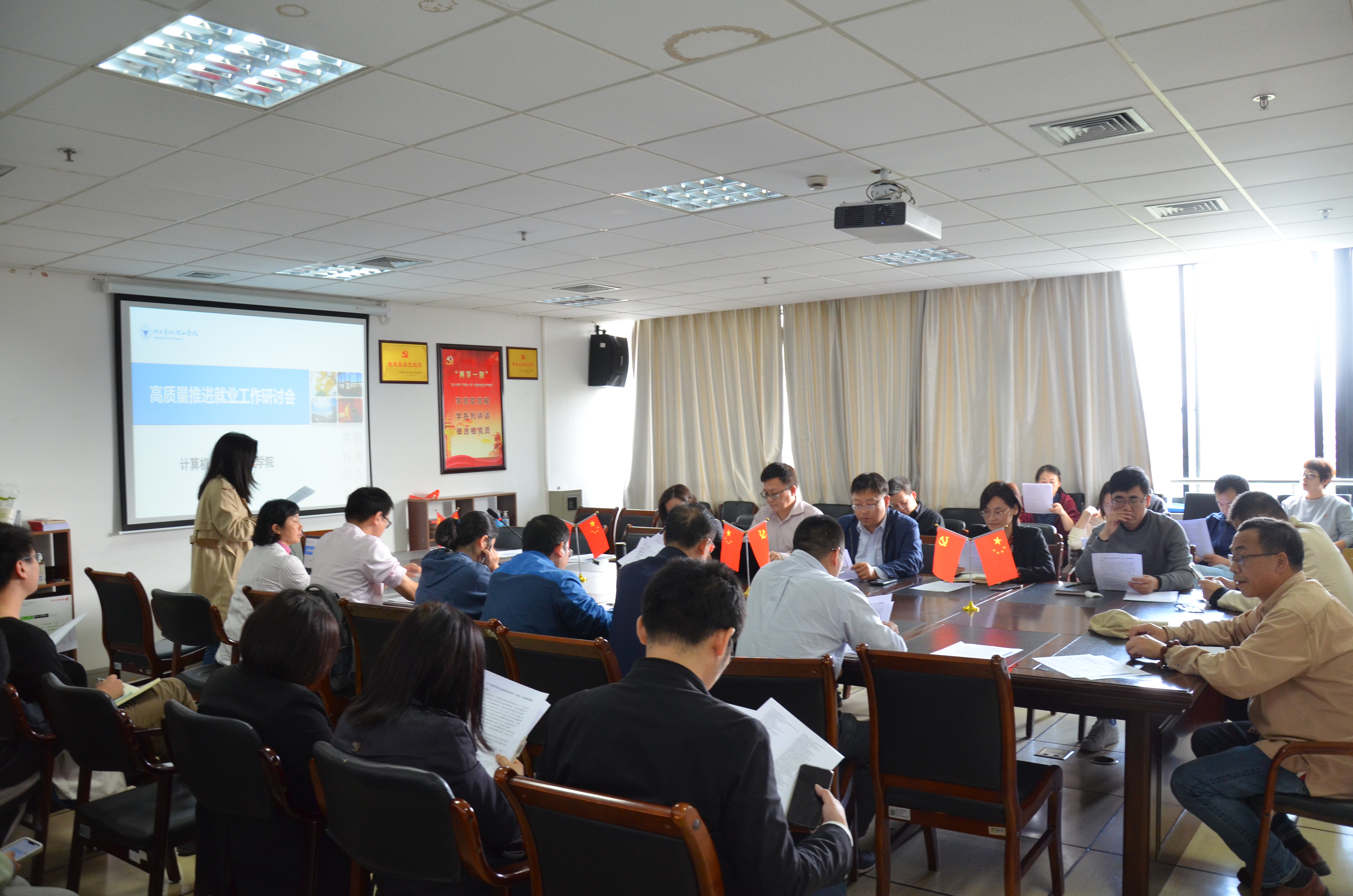 参会老师就推进就业工作进行了深入的研讨与交流。汪诚波老师表示应注意把握IT行业招聘应届生的关键时间点往往是大三下学期的四五月份,应鼓励在校生积极实习实践。卢焕达老师表示至今还未落实就业的应届生往往是就业观念上存在偏差,存在高不成低不就的现象。舒振宇老师表示考公考编的员工非常看重应届生身份,建议公司邀请权威专家进行相关解答。文世挺老师表示要帮助员工做好求职定位,把精力集中到与自己能力相匹配的企业和岗位上。郭新友老师表示作为班导师从大一开始就要帮助员工做好各阶段的学业规划,每学期都制定好目标和计划,多与员工沟通交流,教育引导员工积极上进。