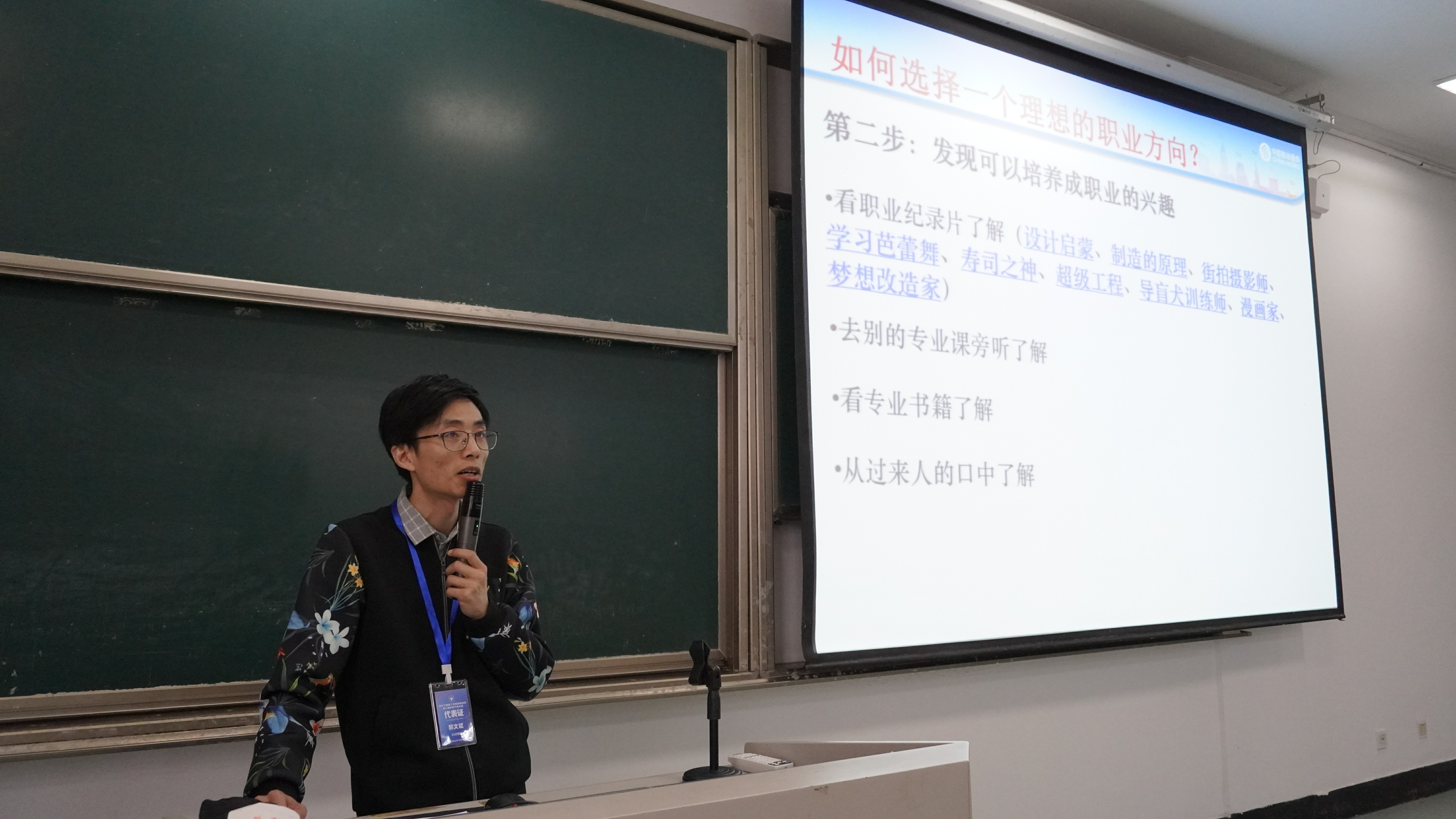 讲座开始,汪洪老师介绍举办此次活动的目的,并向同学们介绍了五位员工。五位学长则以各自的主题进行宣讲,分享自己的成长故事、工作心得,给学弟学妹指点迷津,传递正能量。