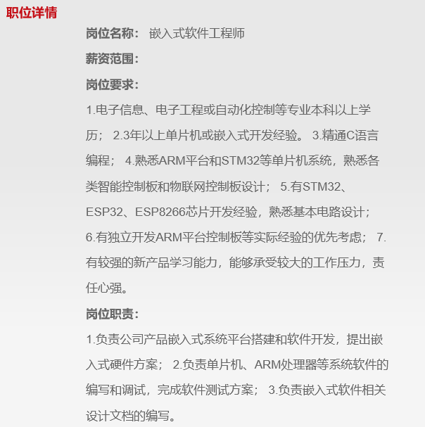 应该是比较匹配的,公司布局智能家居,嵌入式人才应该是会有需要
